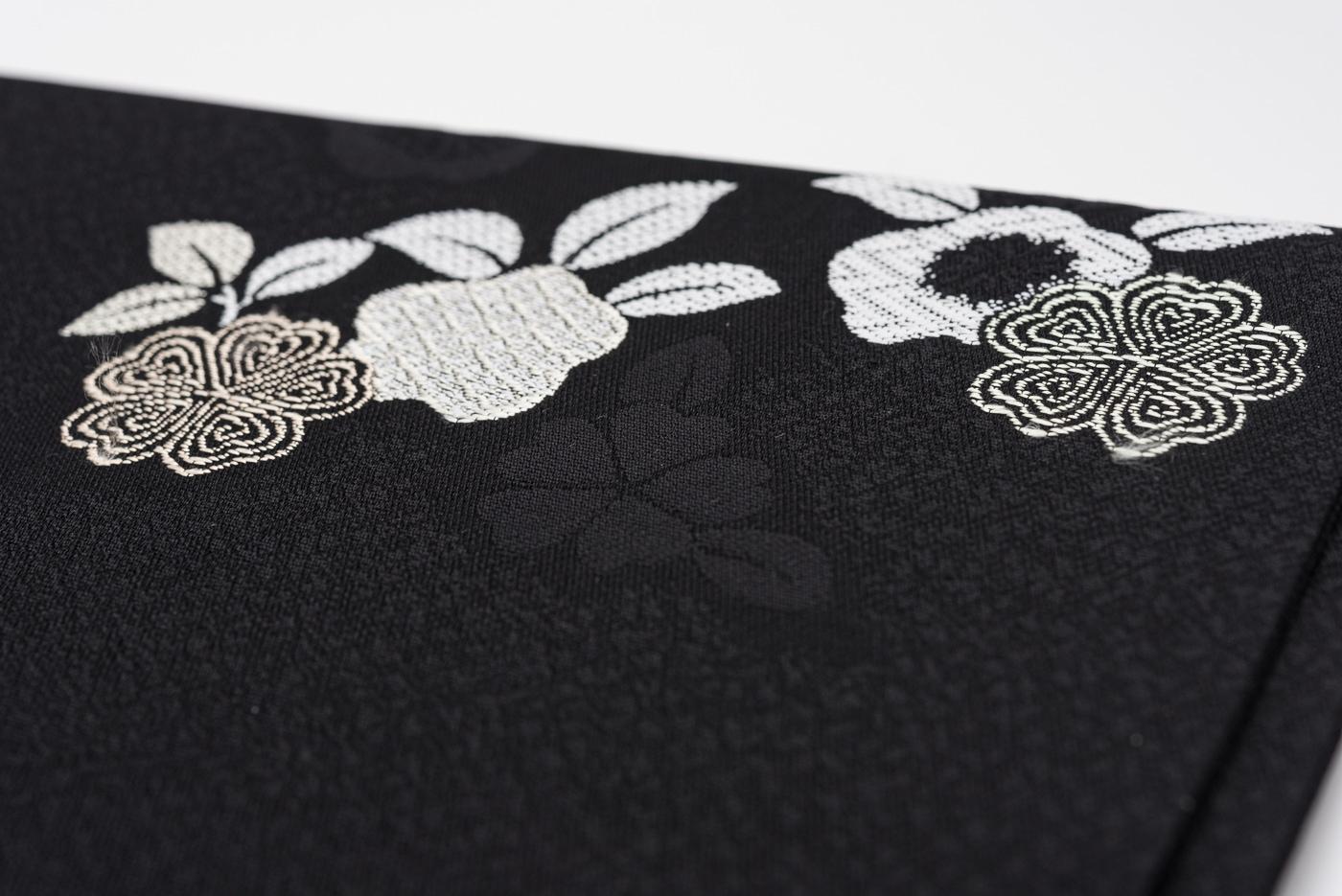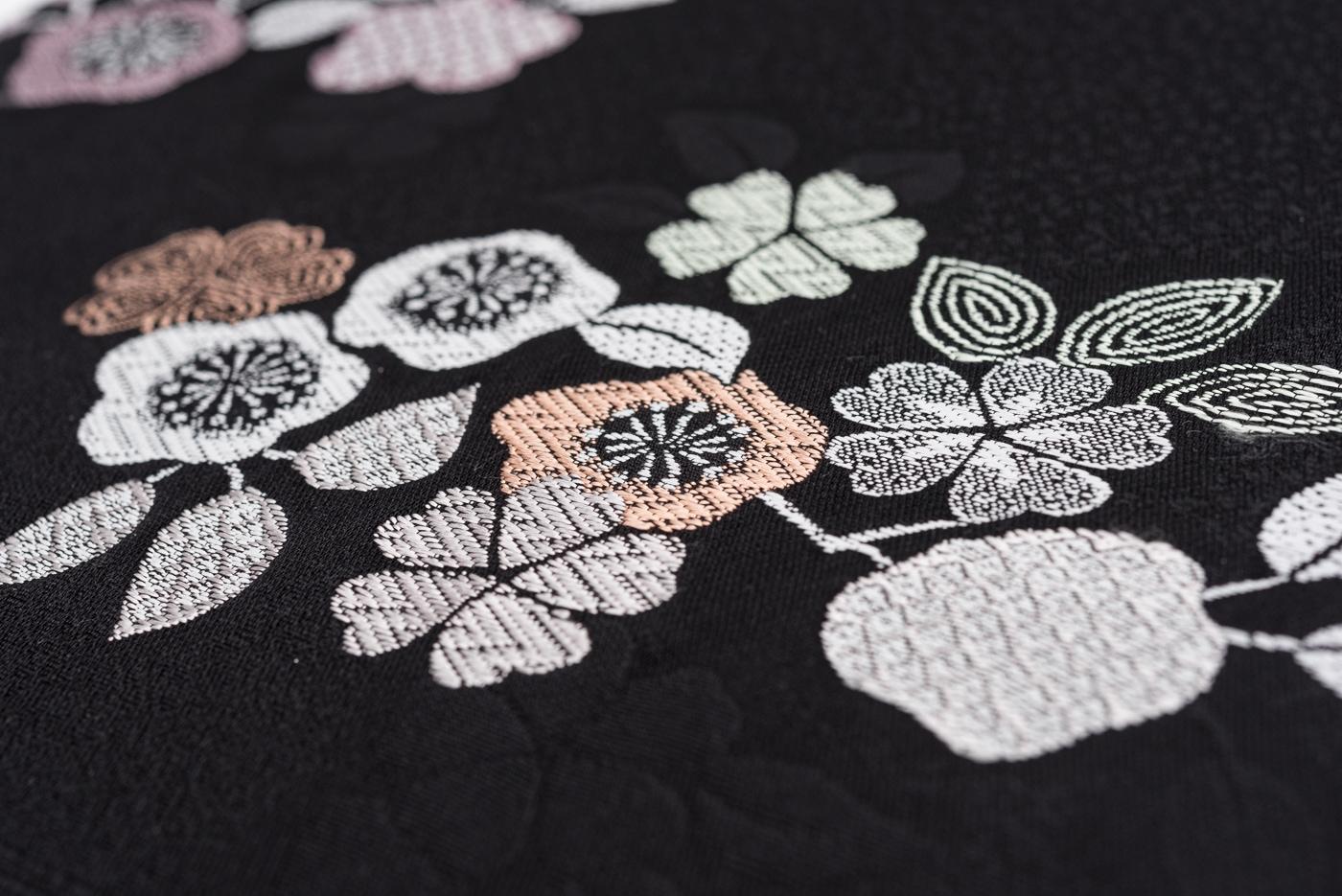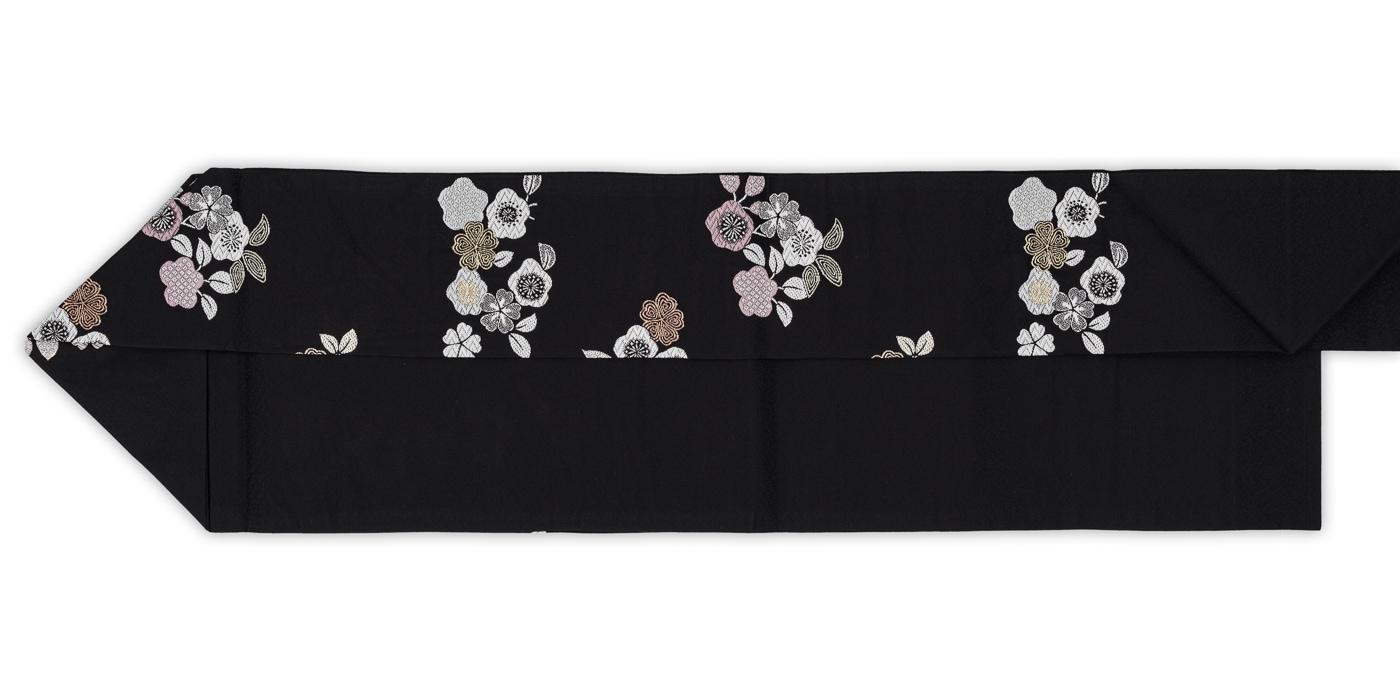 黒地に桜の花を織り出した九寸名古屋帯です。