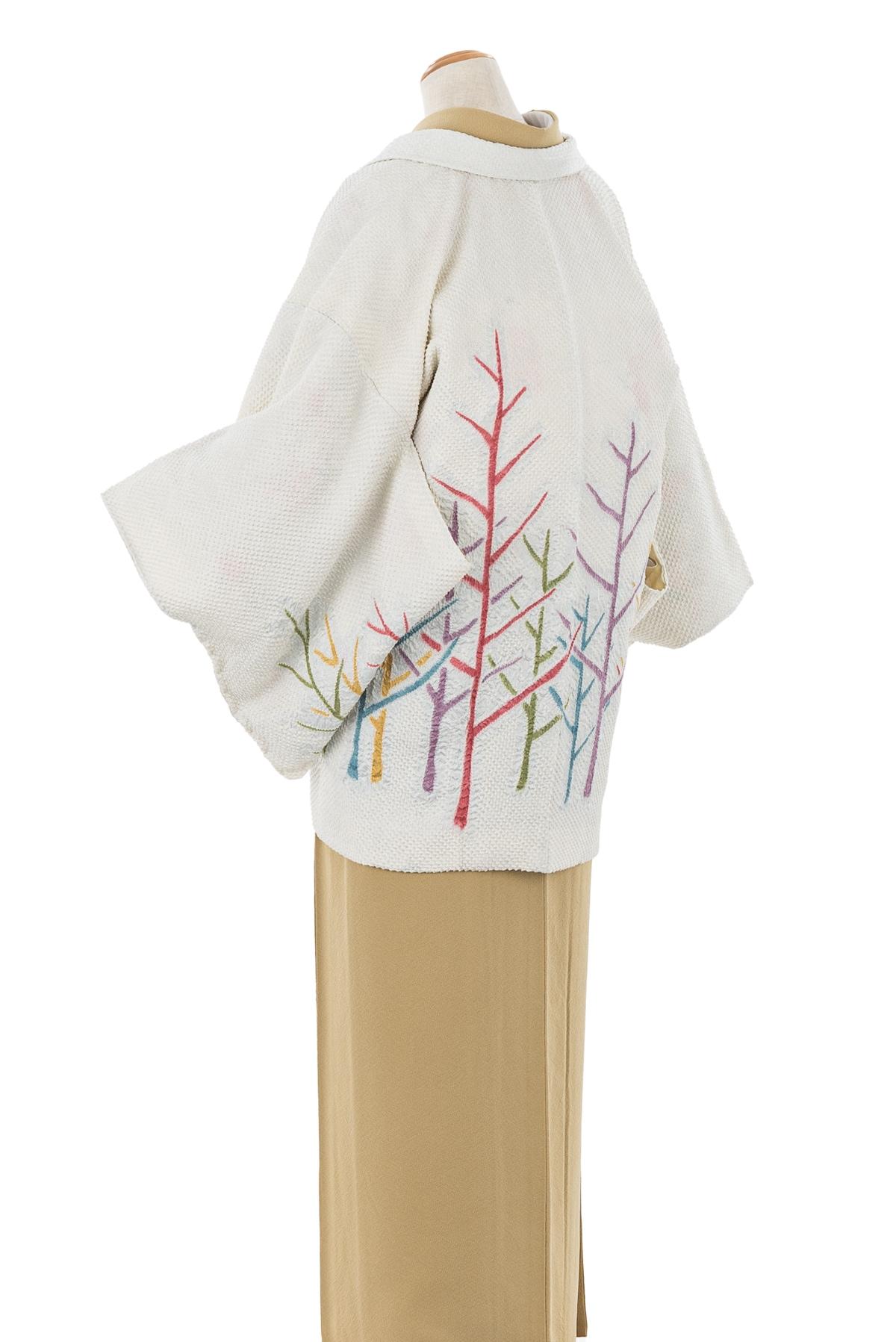 白地にカラフルな立木が並ぶ総絞りの絵羽織です。