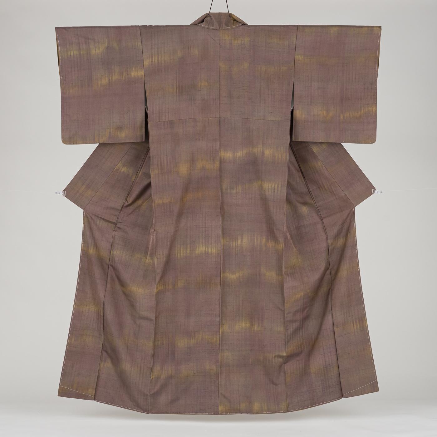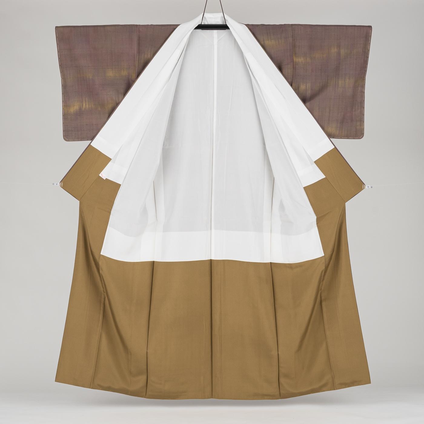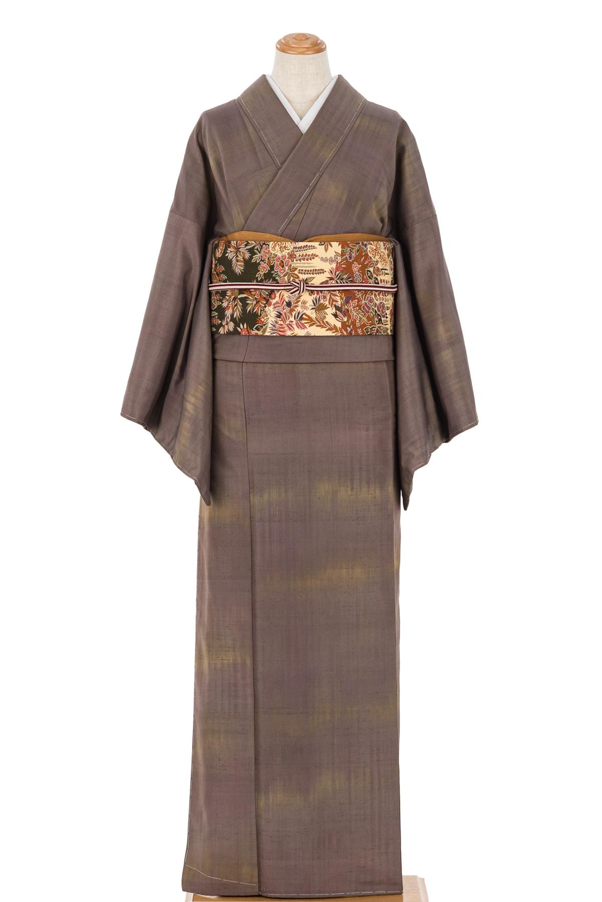 濃い胡桃染色と言ったふうな優しい茶を基調とした暈し染めの着物です。
