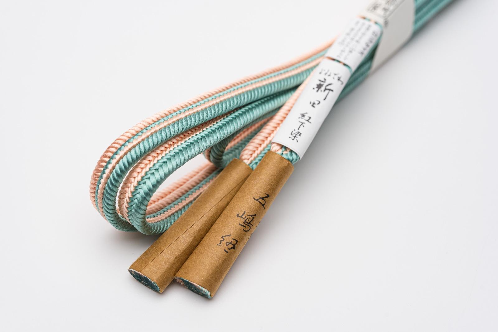 【長尺】 江戸組紐 五嶋紐 帯締め 新田紅下染 水柿・青竹色