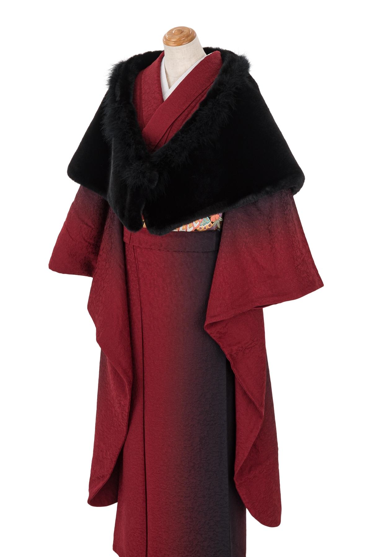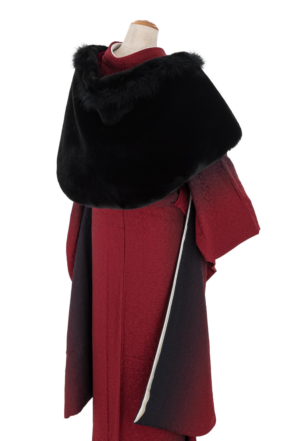 シンプルであたたかなフェイクファーのケープです。首周りには同色の羽毛が付いておりますので、お顔まわりをさりげなく華やかに見せてくれます。振袖にはもちろん、その他着物とも合わせてお使いいただけます。---------≪サイズ≫幅(最長部):122cm丈(最長部):43cm状態:新品----------