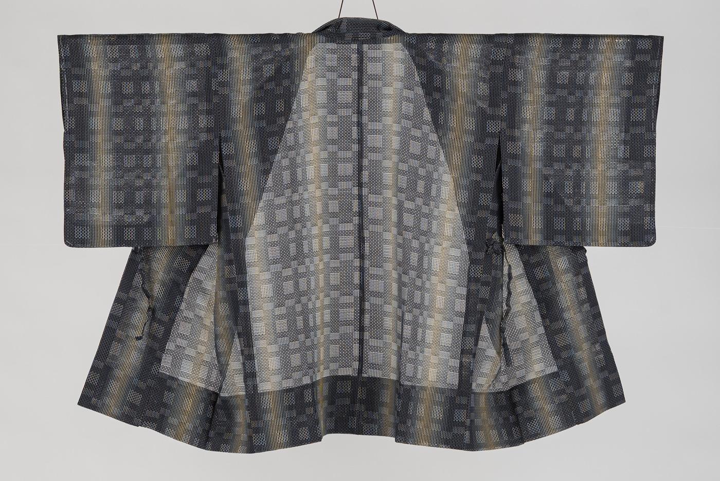 縦暈しの縞模様が浮かび上がる羅のロング道中着です。