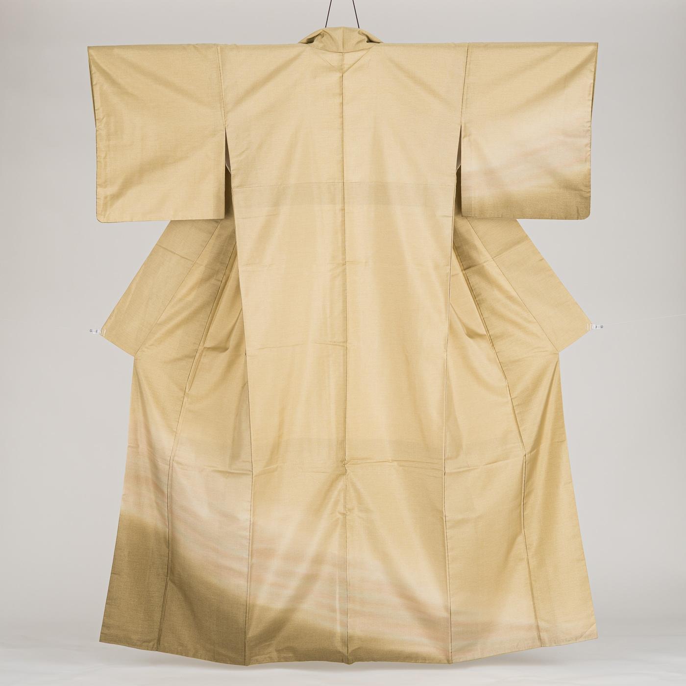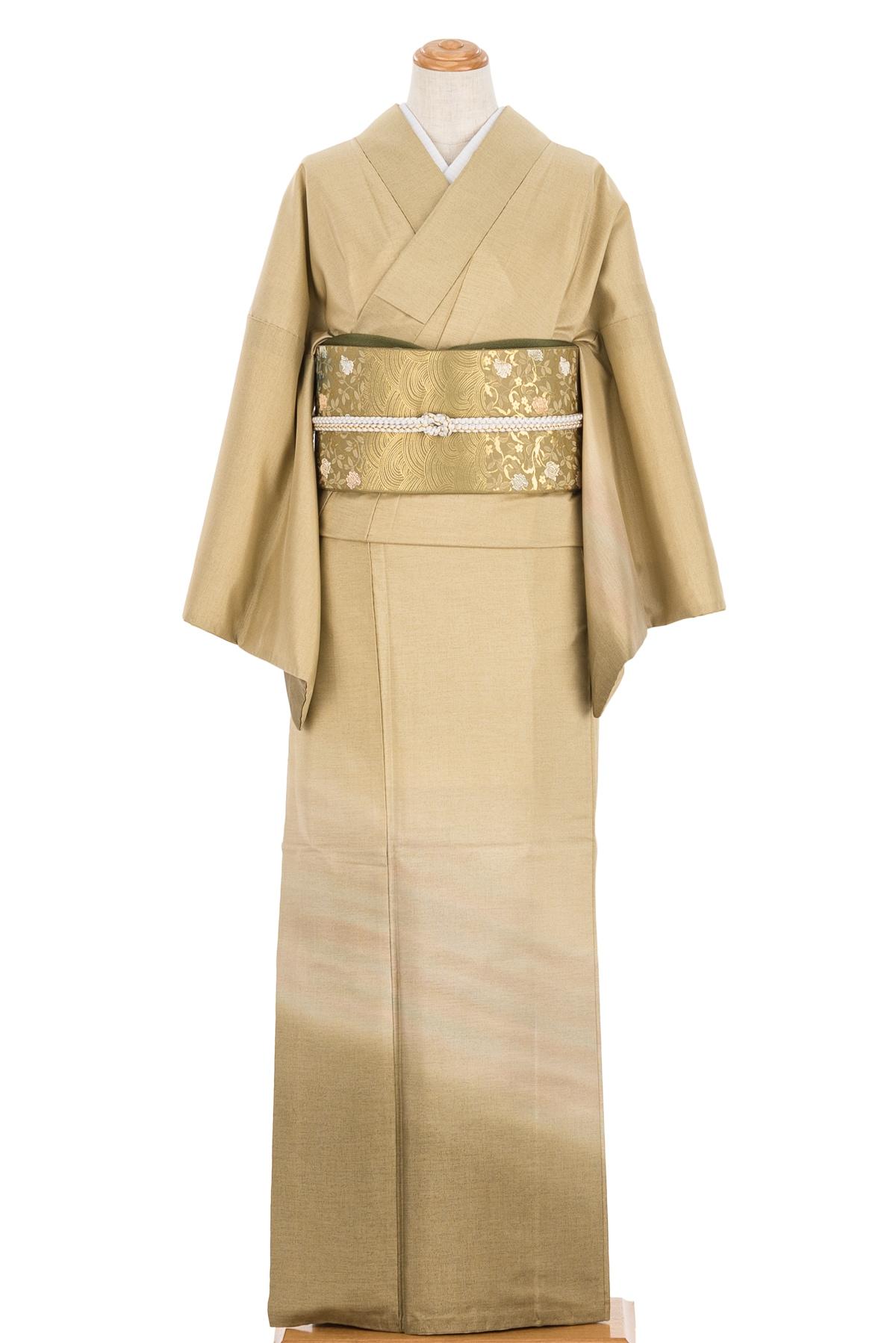 木蘭色の地に霞模様を染めた大島紬の訪問着です。