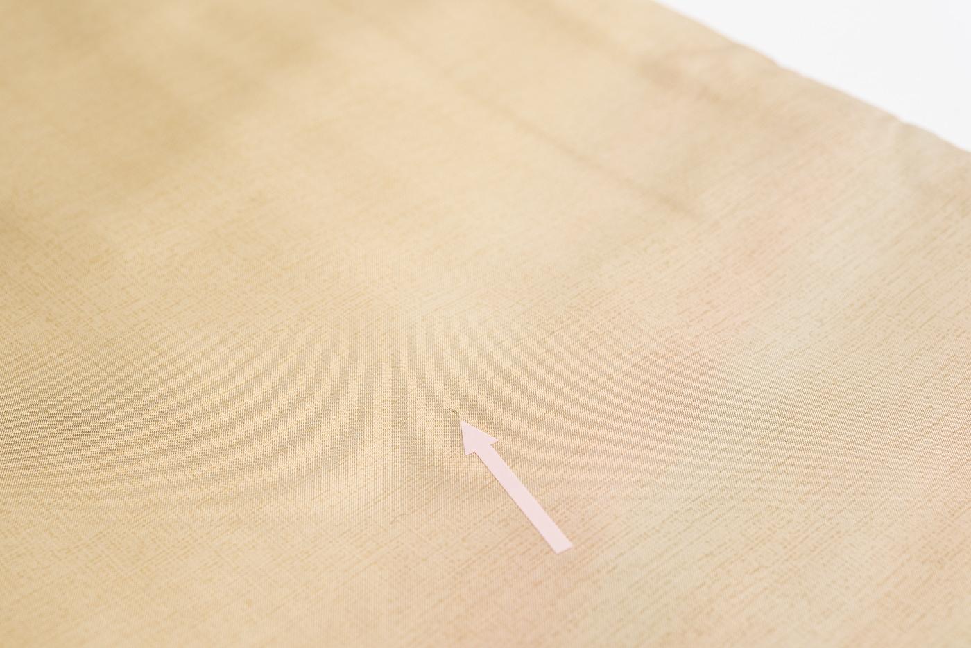 左前袖、袖底上20cmの付近に織り難があります。