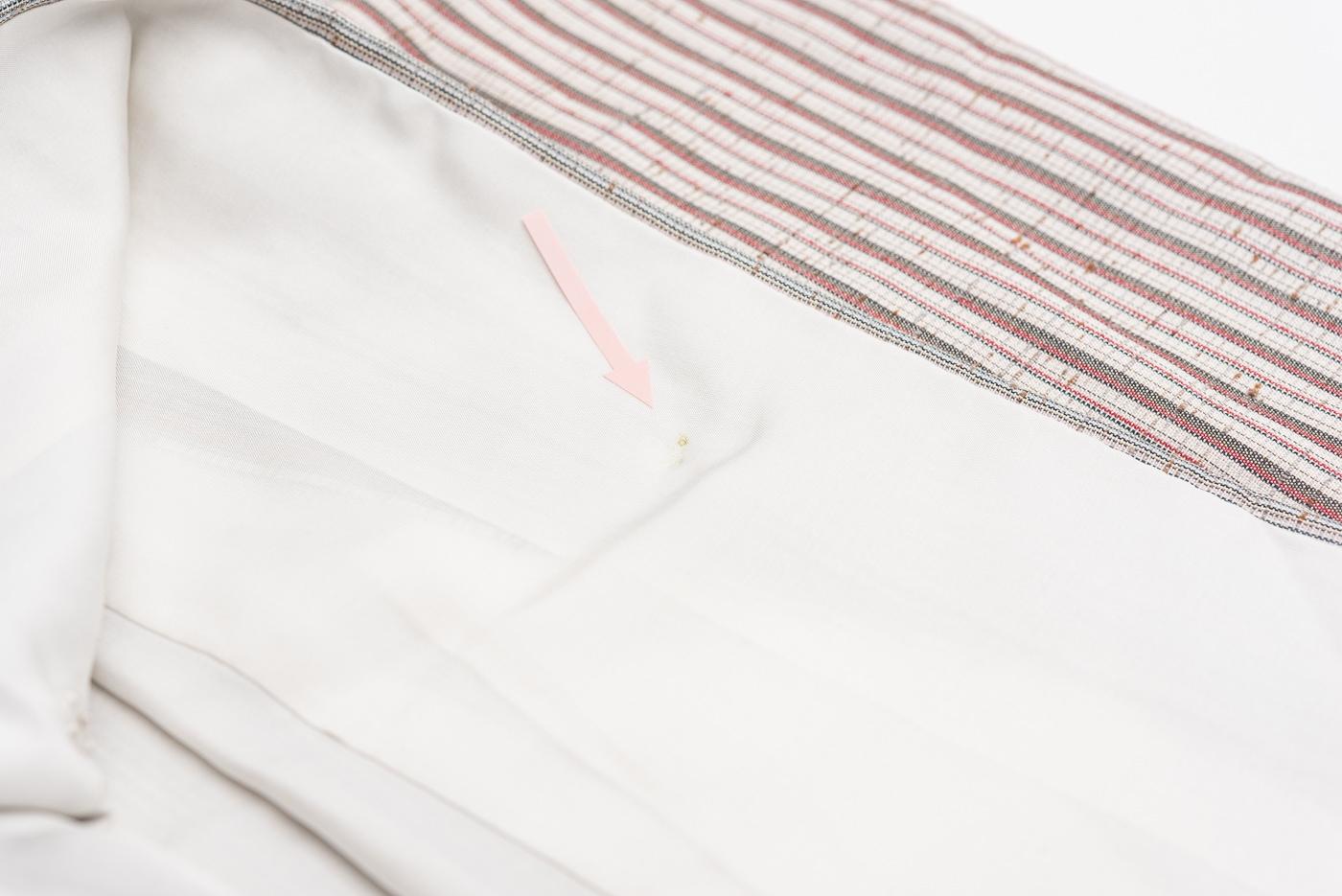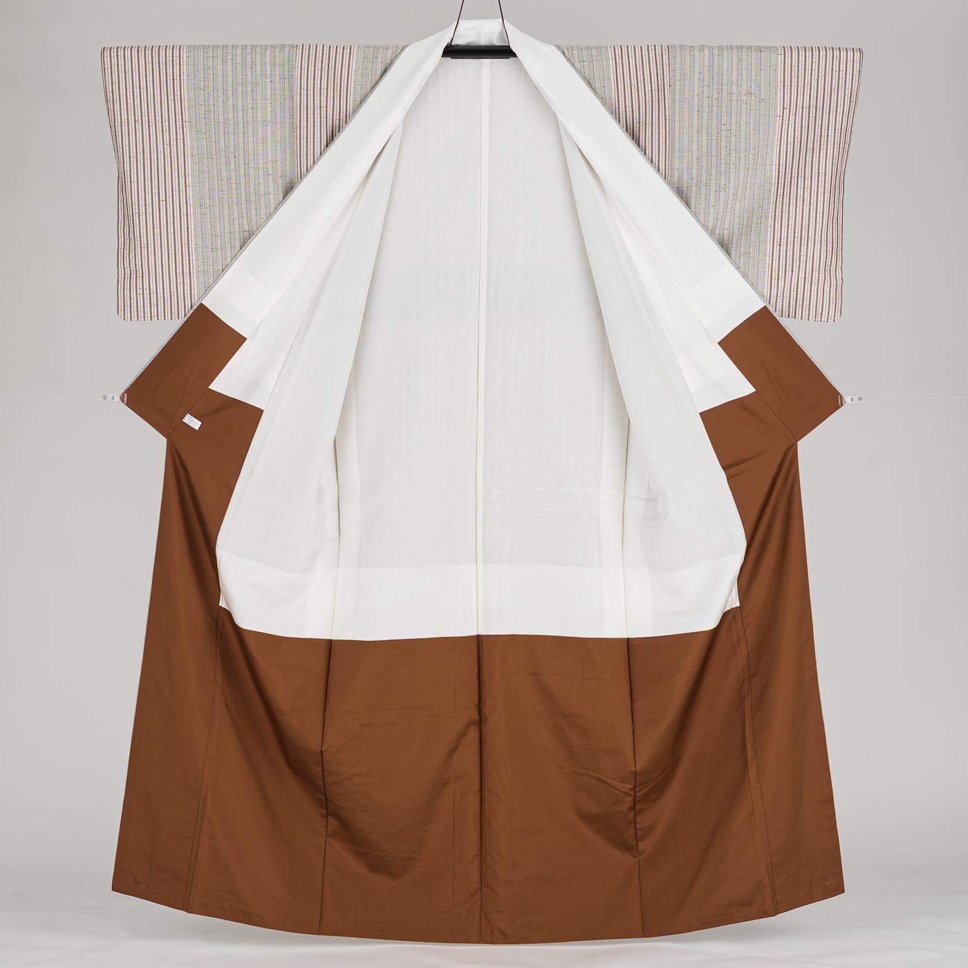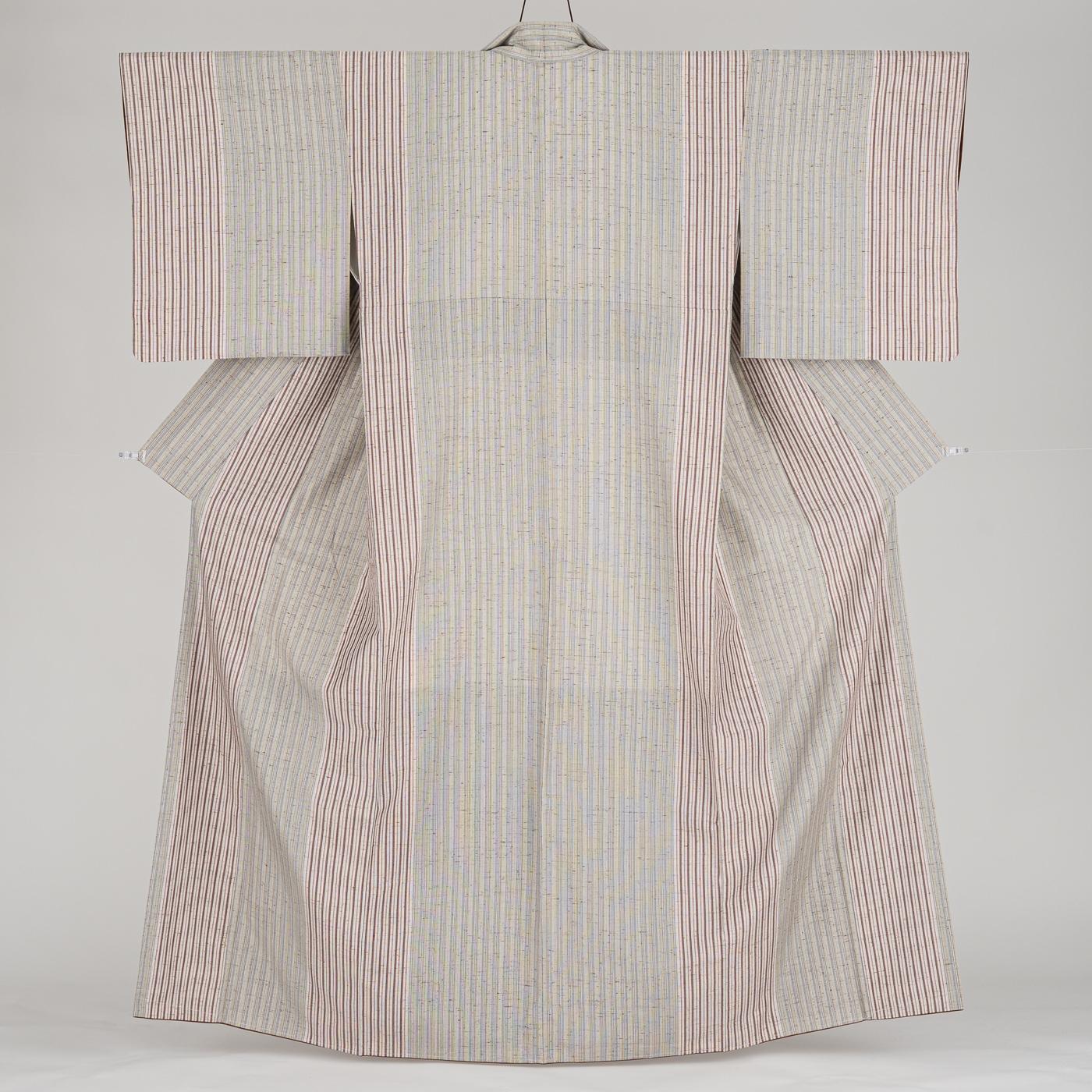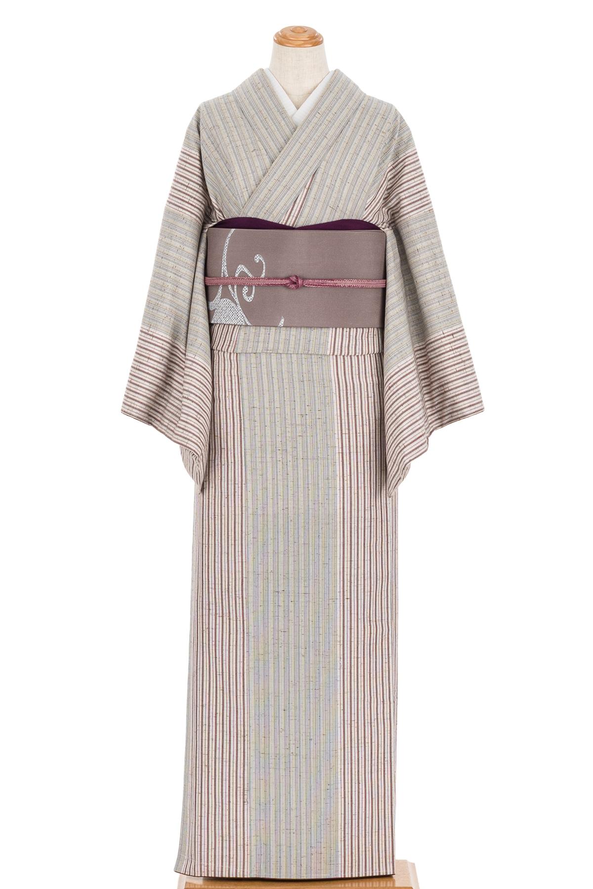 二種の縞模様を織り出した米沢ぜんまい紬の着物です。