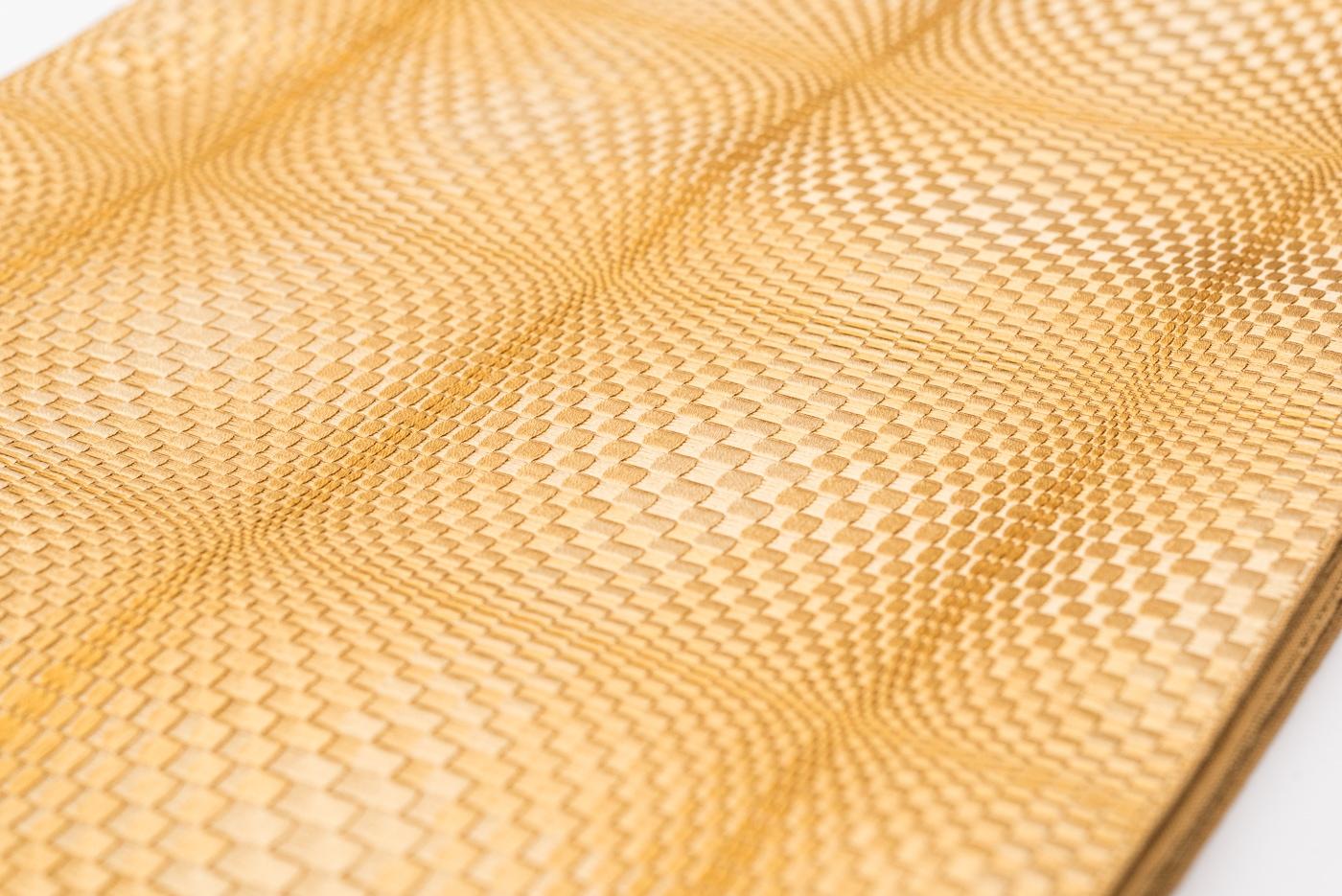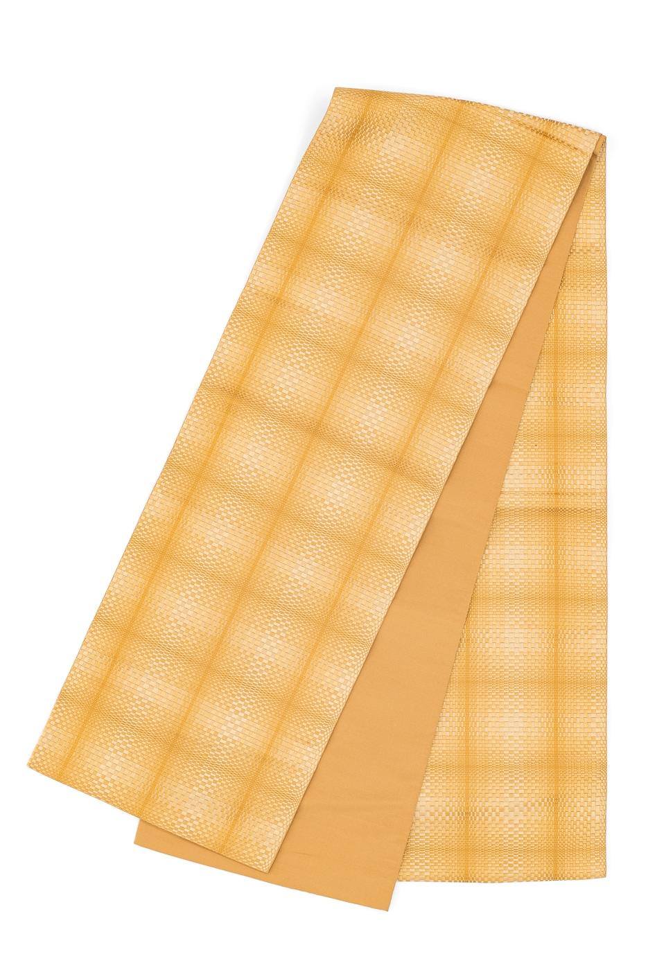変わり市松と大きな格子を織り出した八寸名古屋帯です。色と柄の組み合わせが作る立体的な模様が美しいですね。目立つダメージ等はなく状態は良好です。この商品はアンティークまたはリサイクルです。ダメージ等よくご確認の上、ご注文下さい。また、---------≪詳細≫長さ:360cm幅:31cm状態:AAA素材:正絹----------