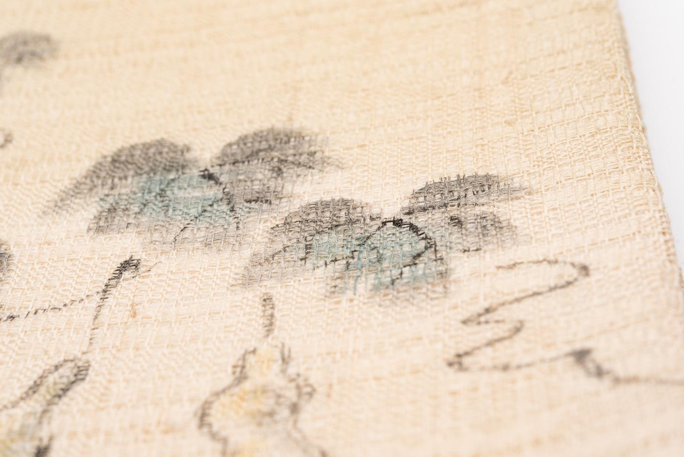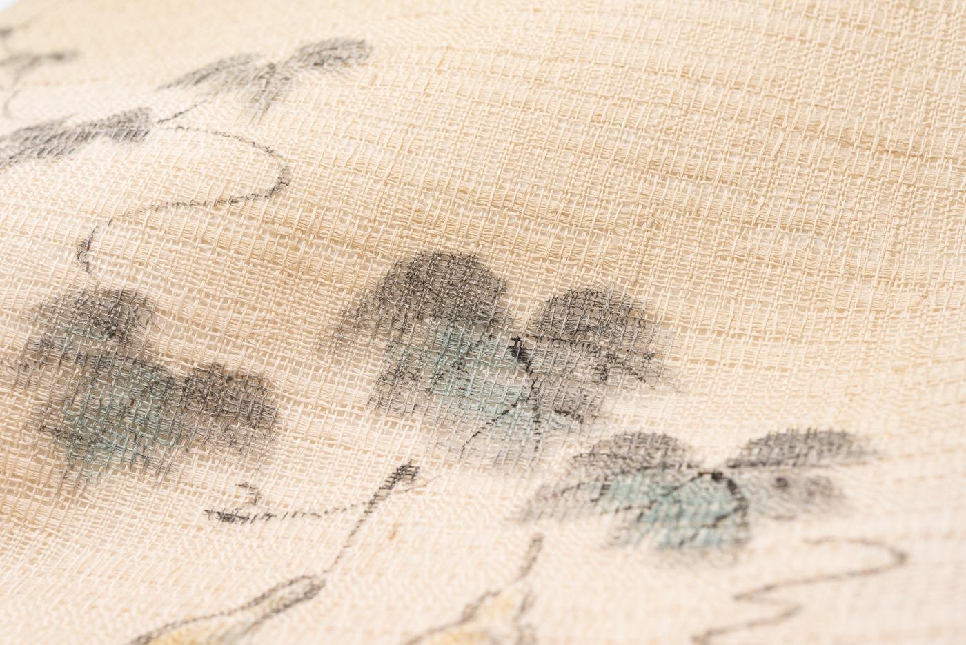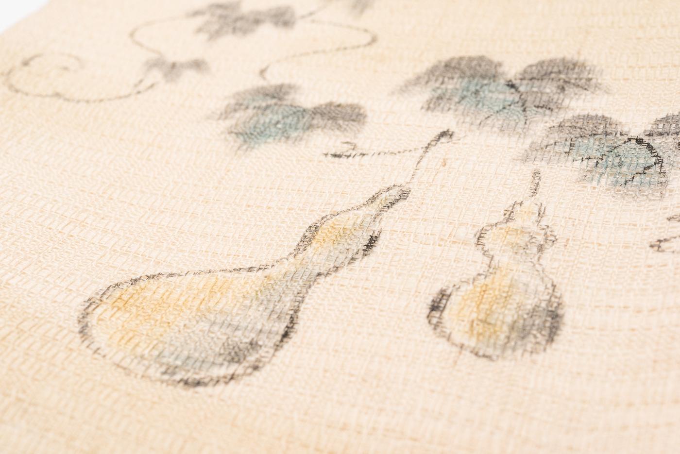 夏帯 紗紬 手描き瓢箪