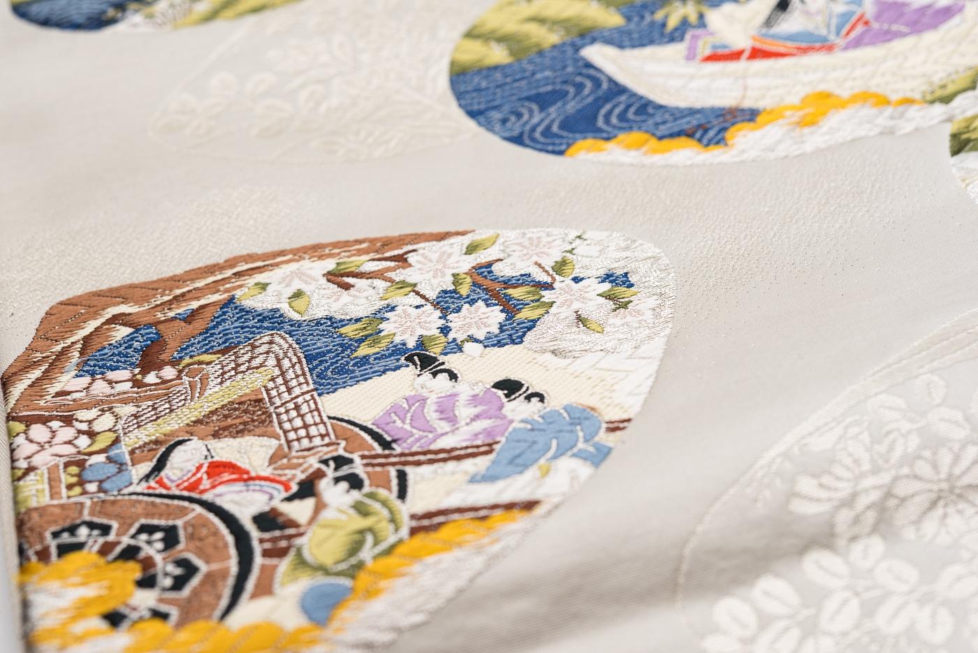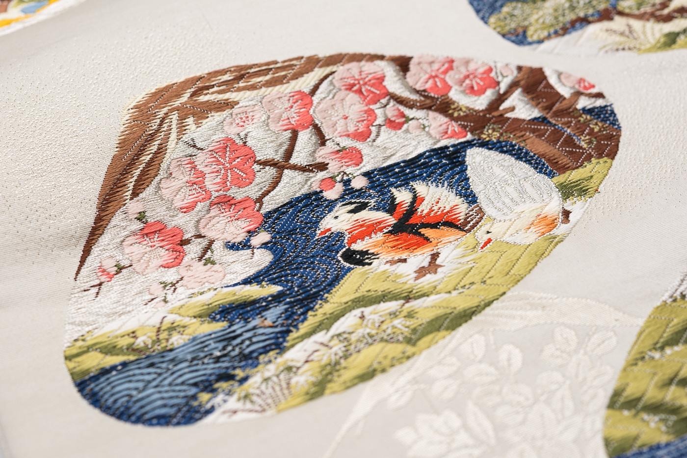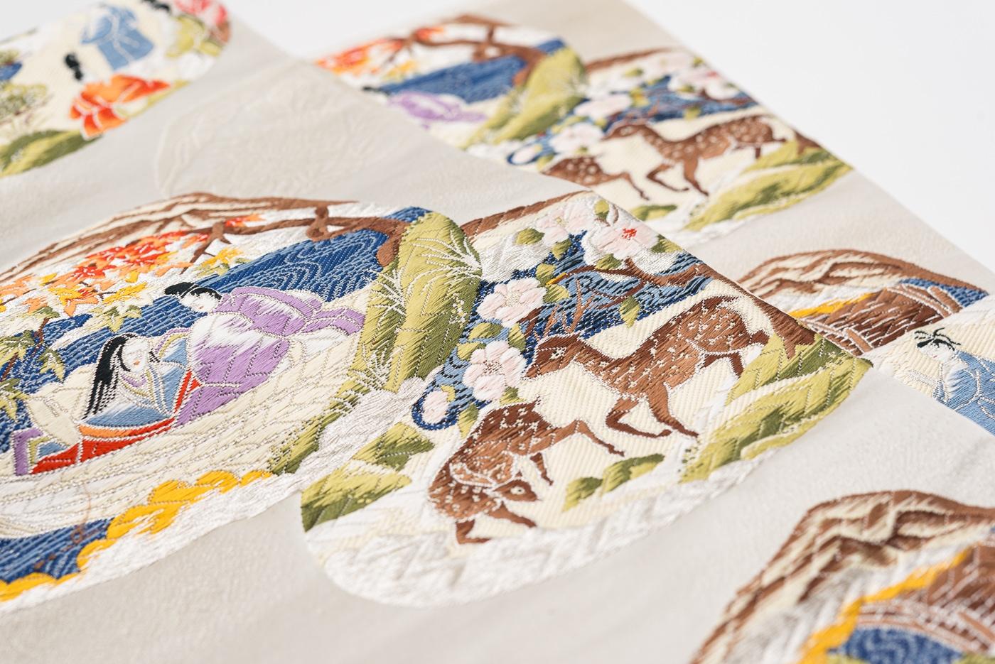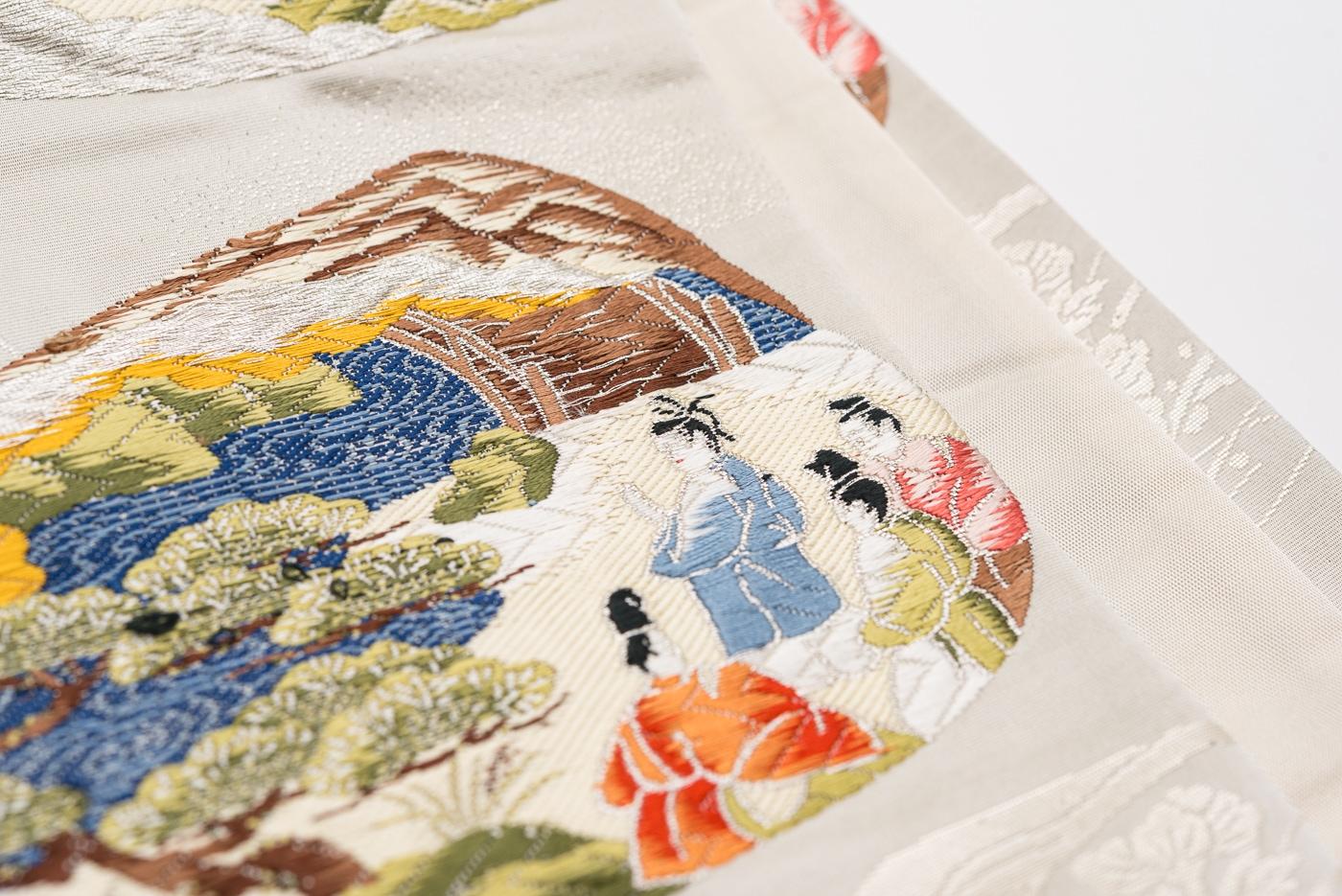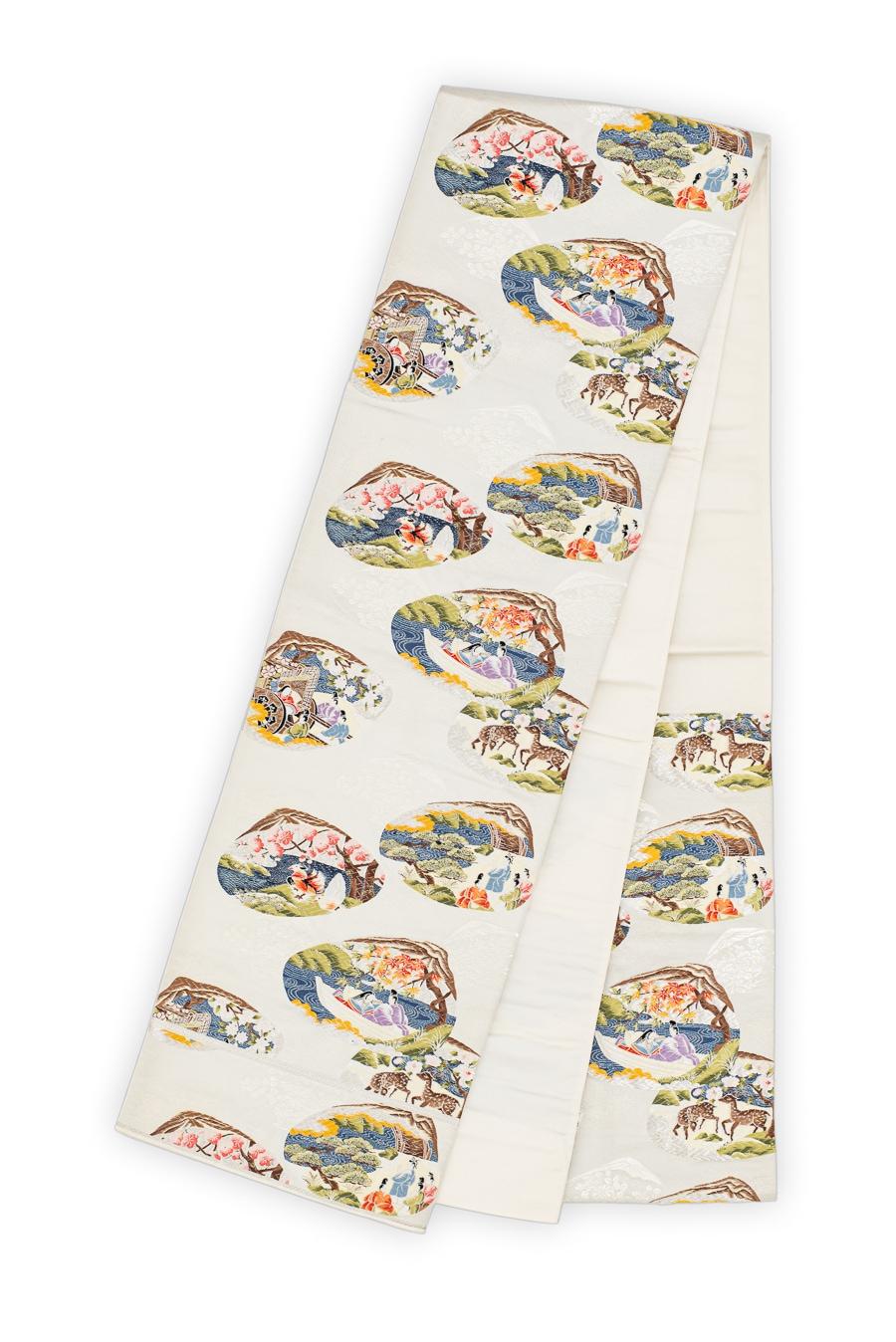 源氏物語などをモチーフとした貝合せ模様の袋帯です。