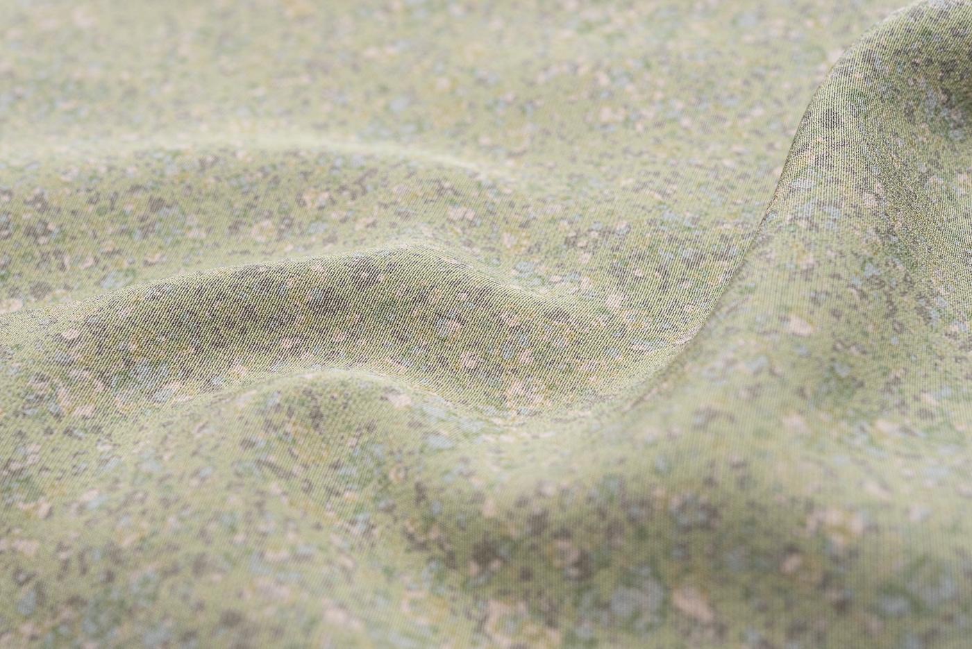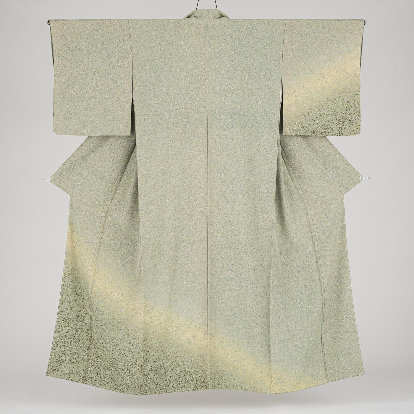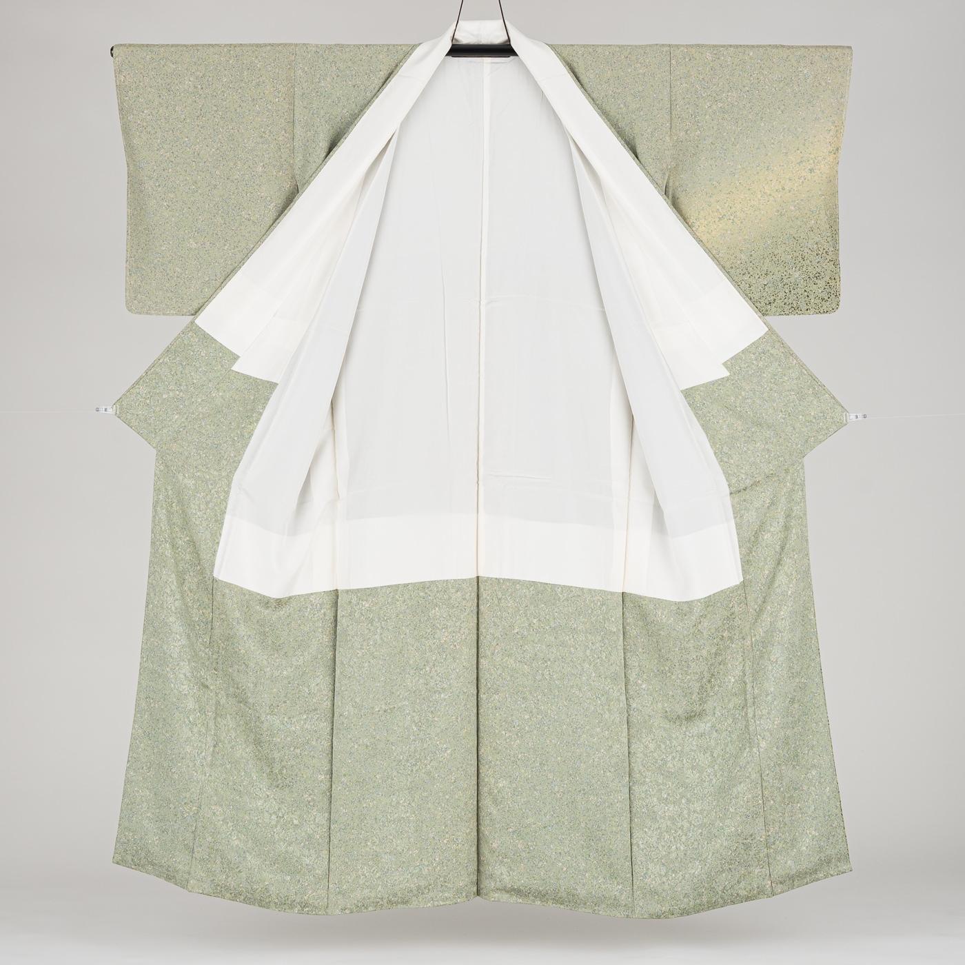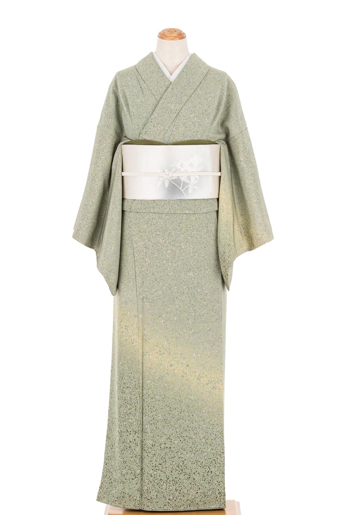 黄緑の暈しに斑模様を染めた訪問着です。