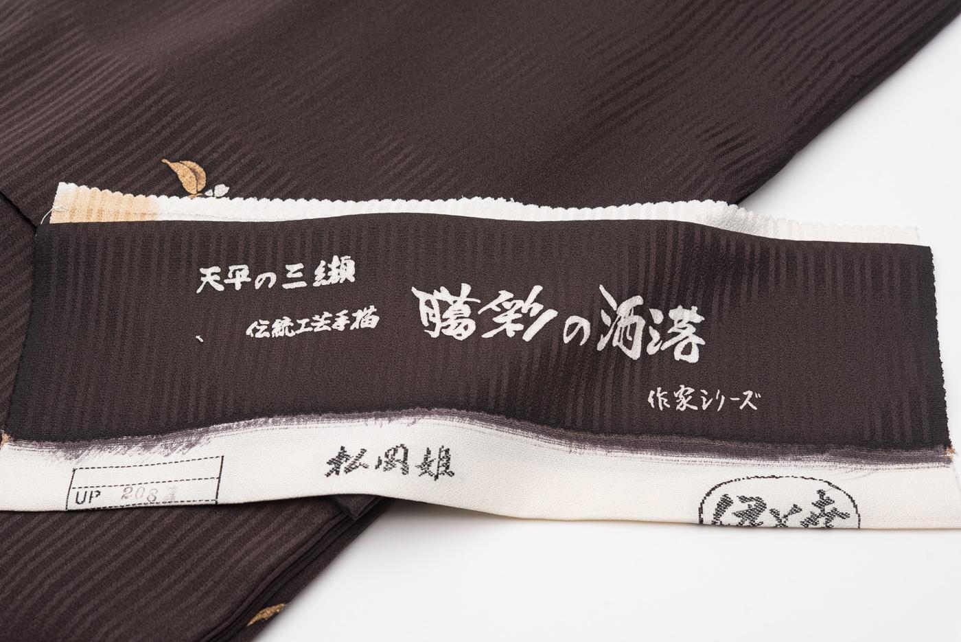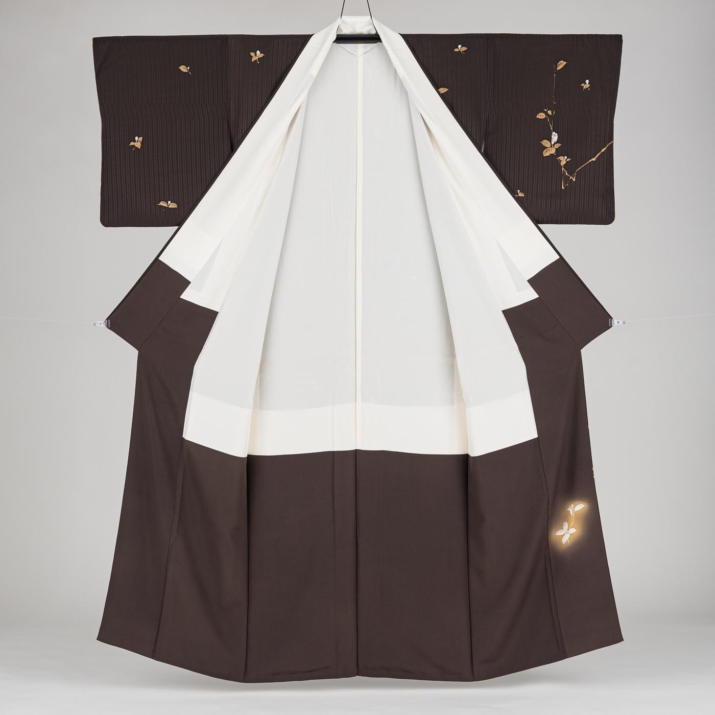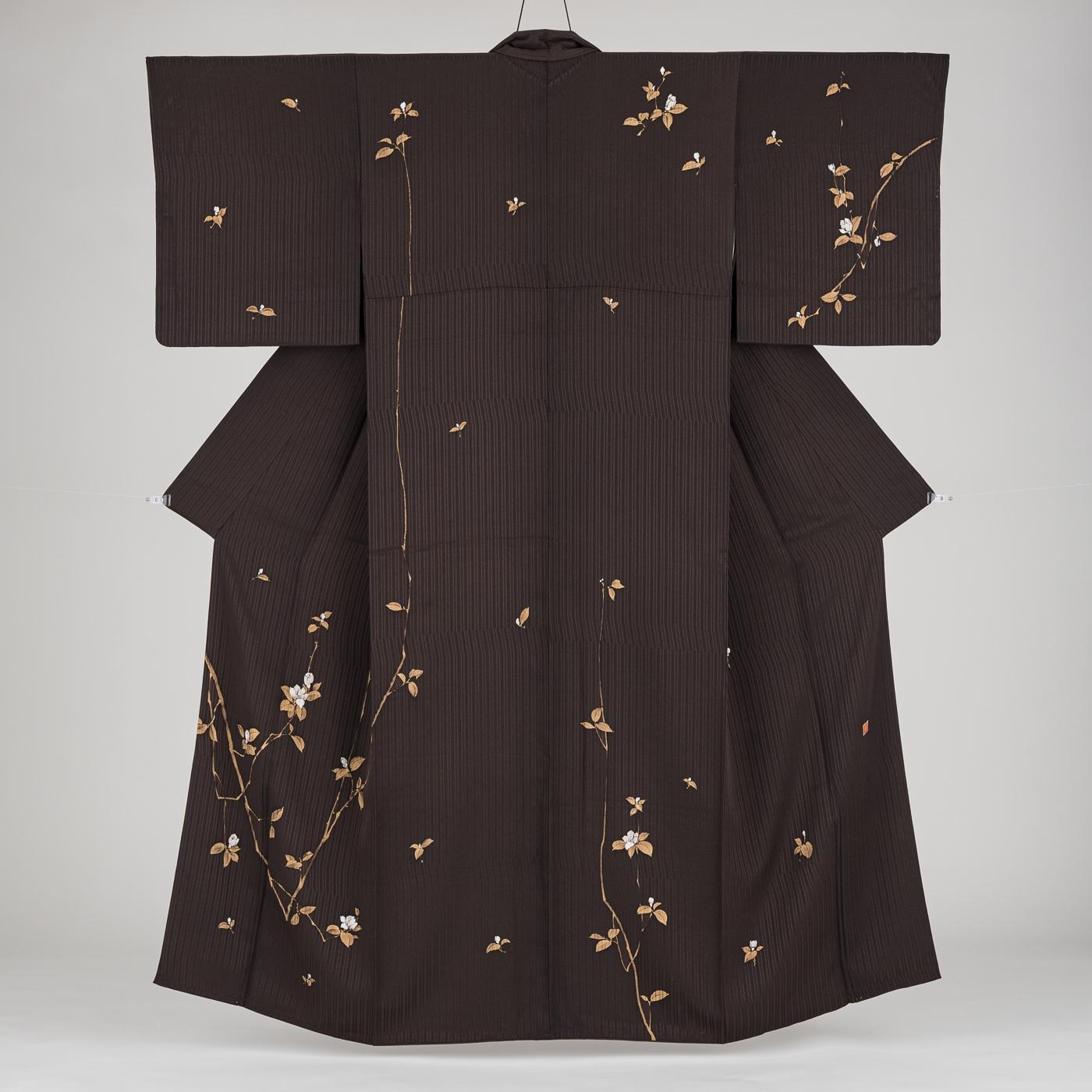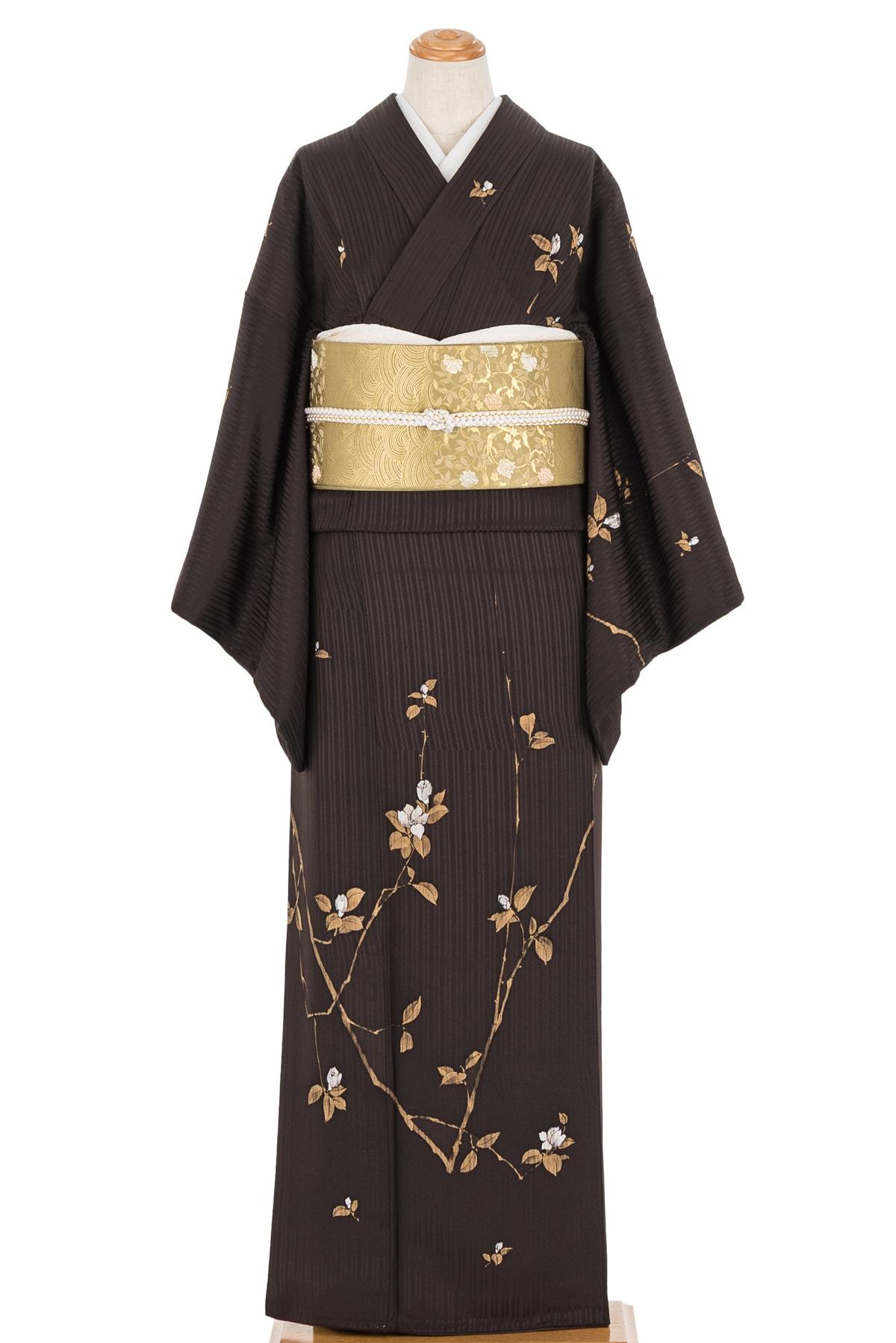 訪問着 焦げ茶 枝花 作家物