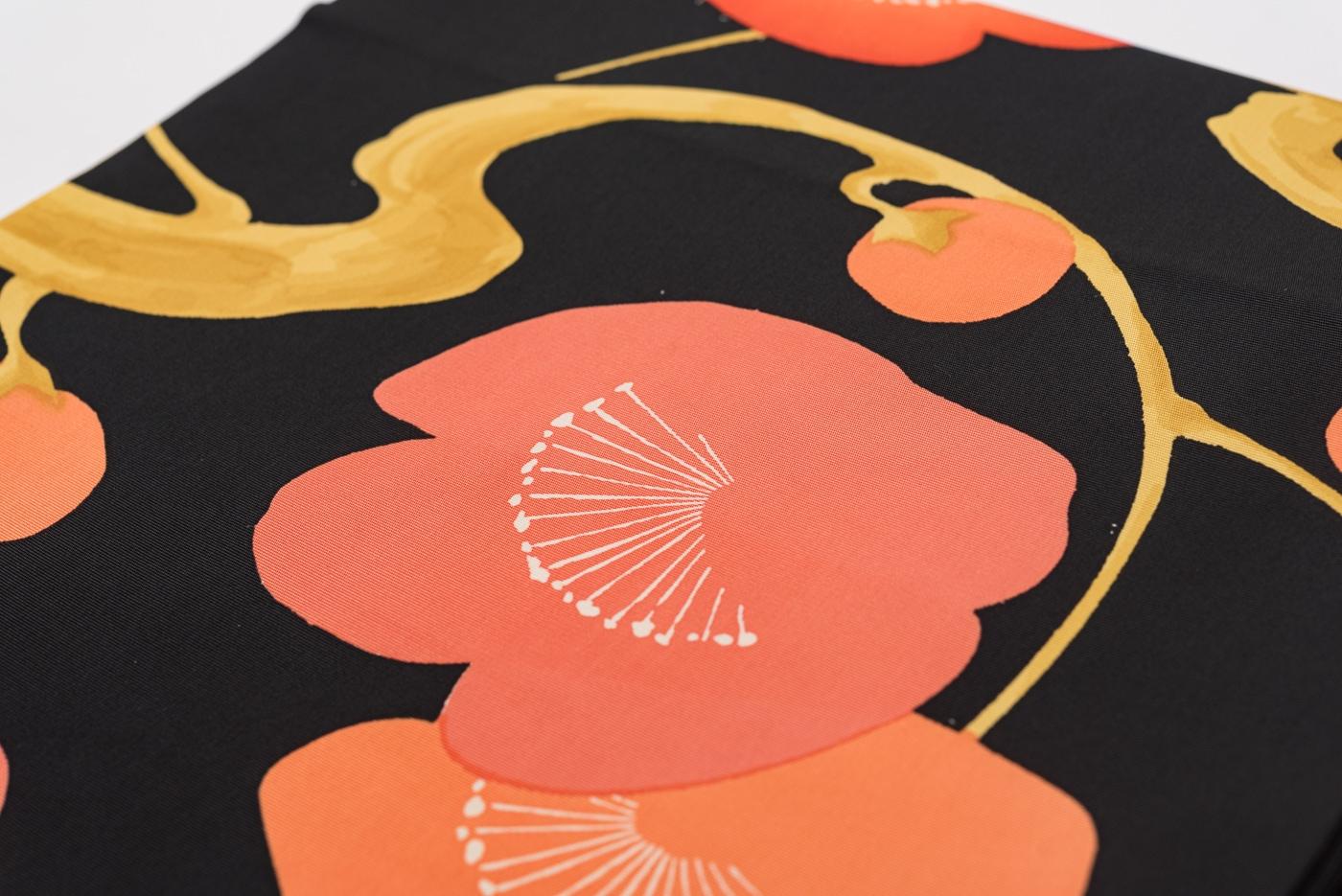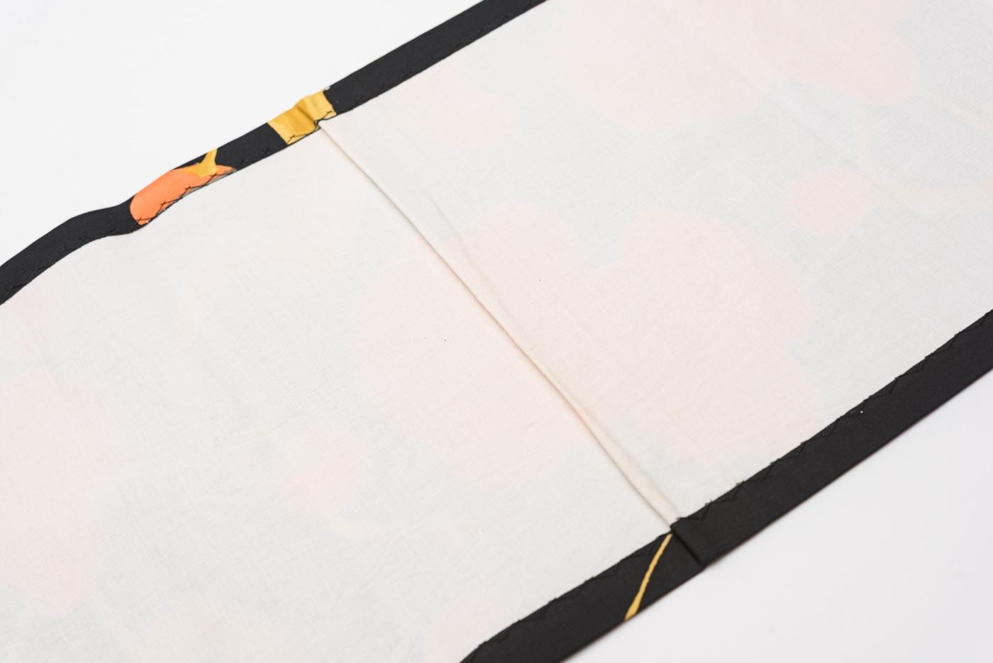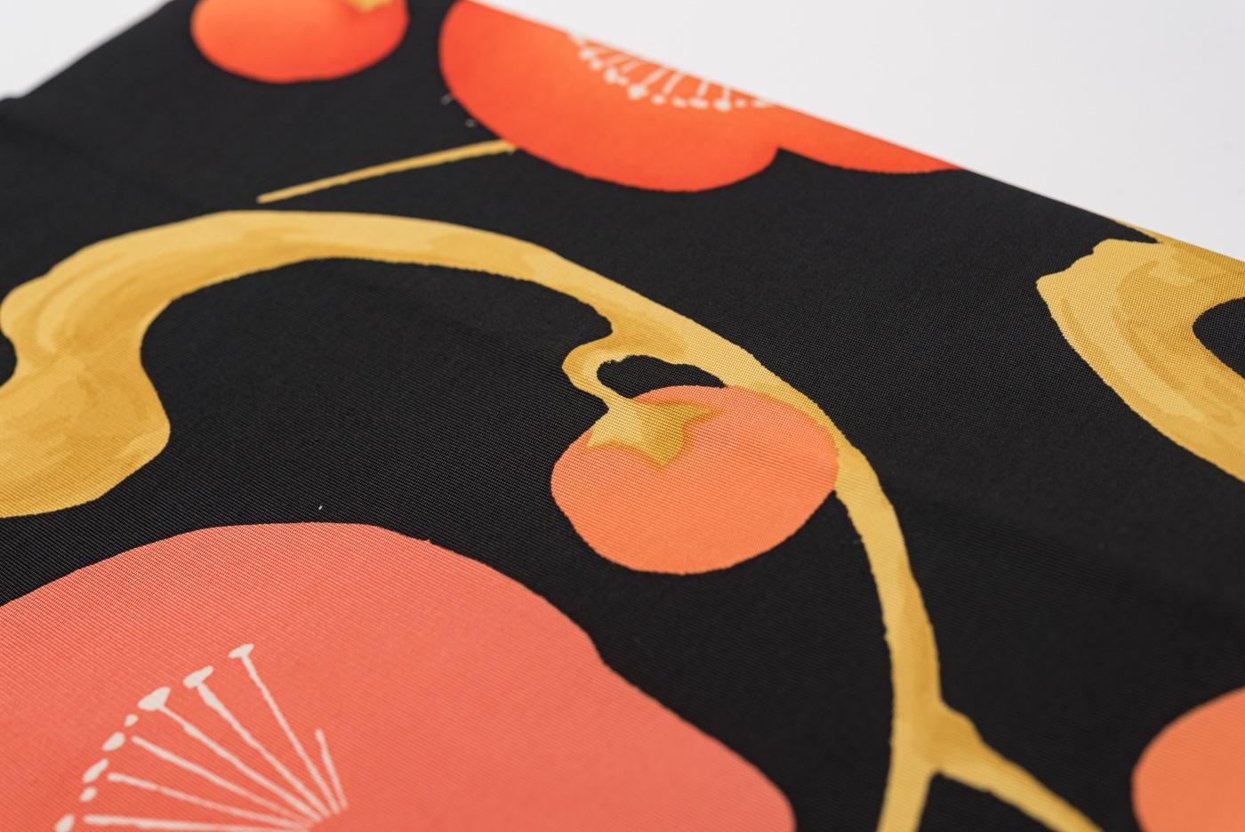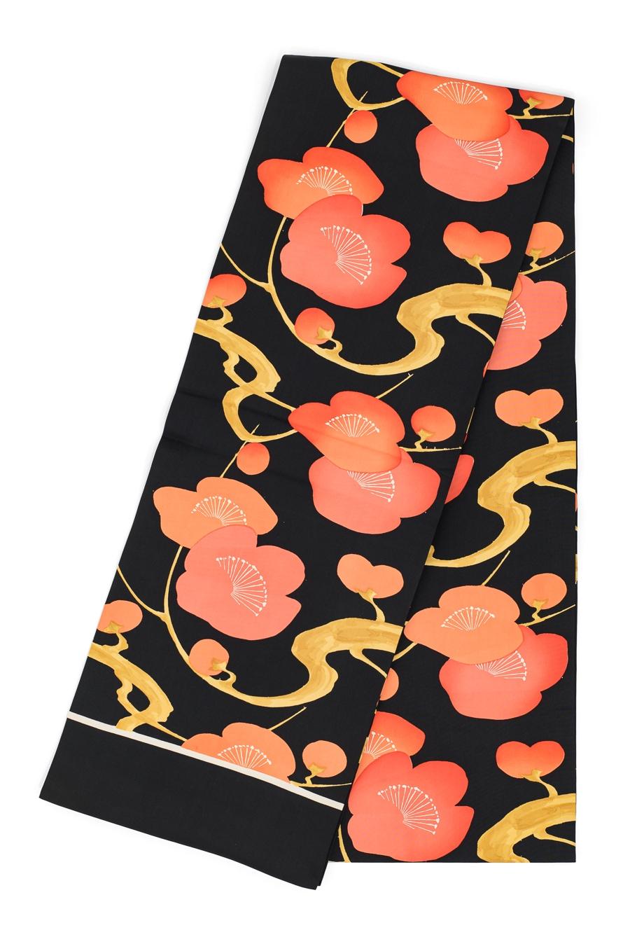 黒の塩瀬地に大きく梅の木を描いた額縁仕立ての九寸名古屋帯です。
