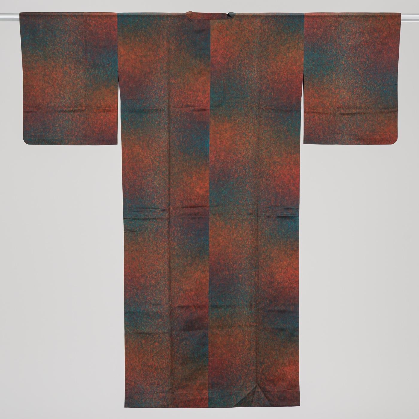 赤銅色、紺、緑などを基調とした市松模様のロングコートです。