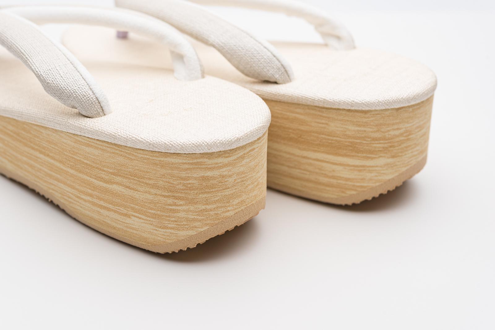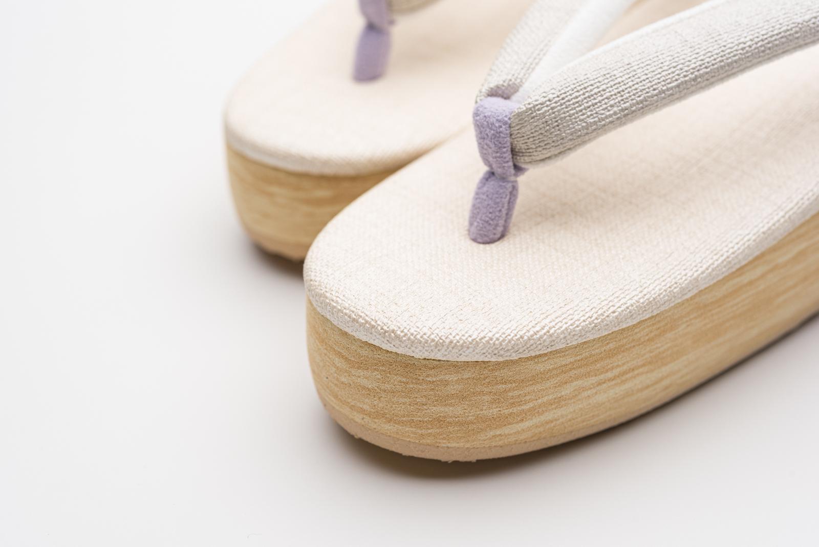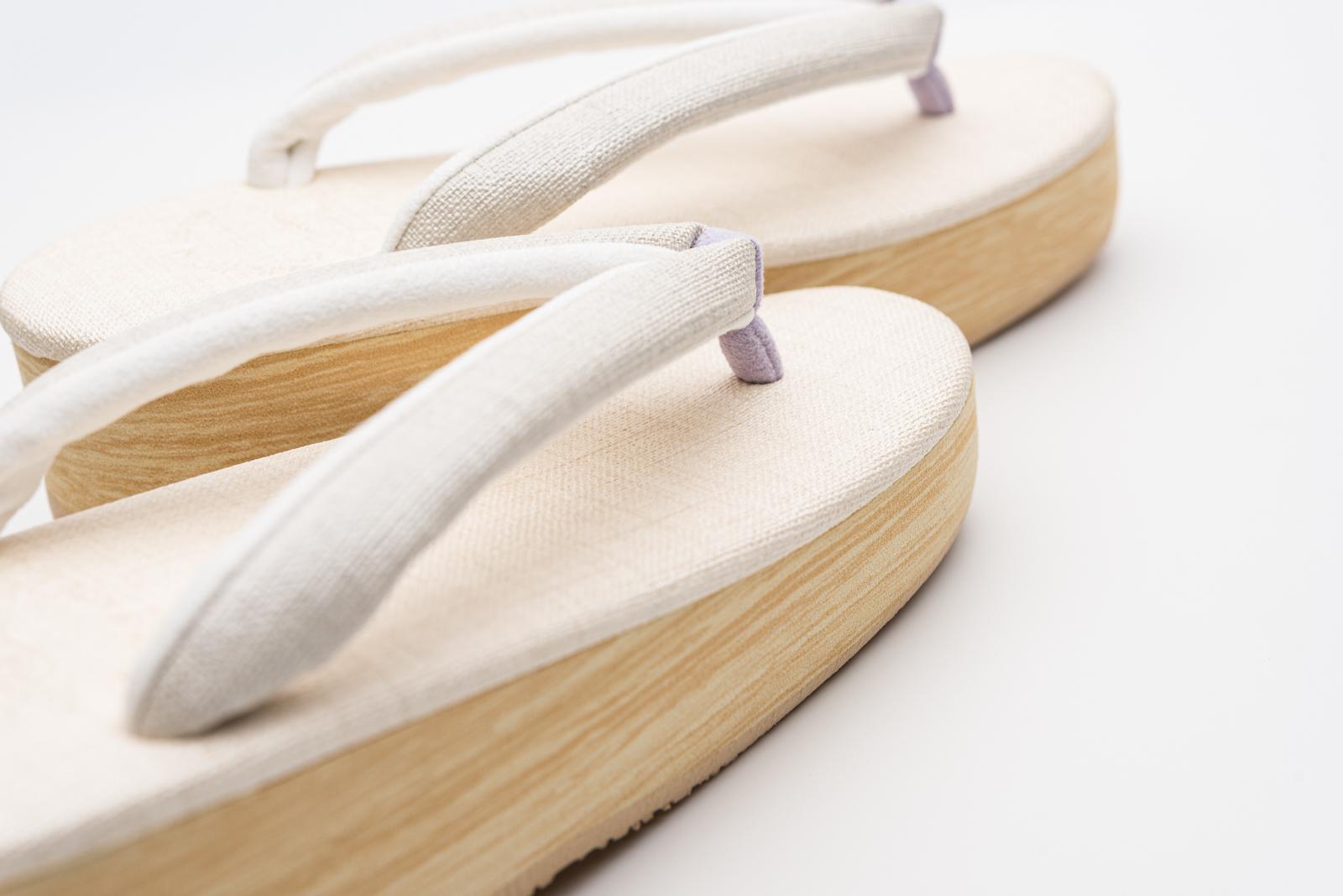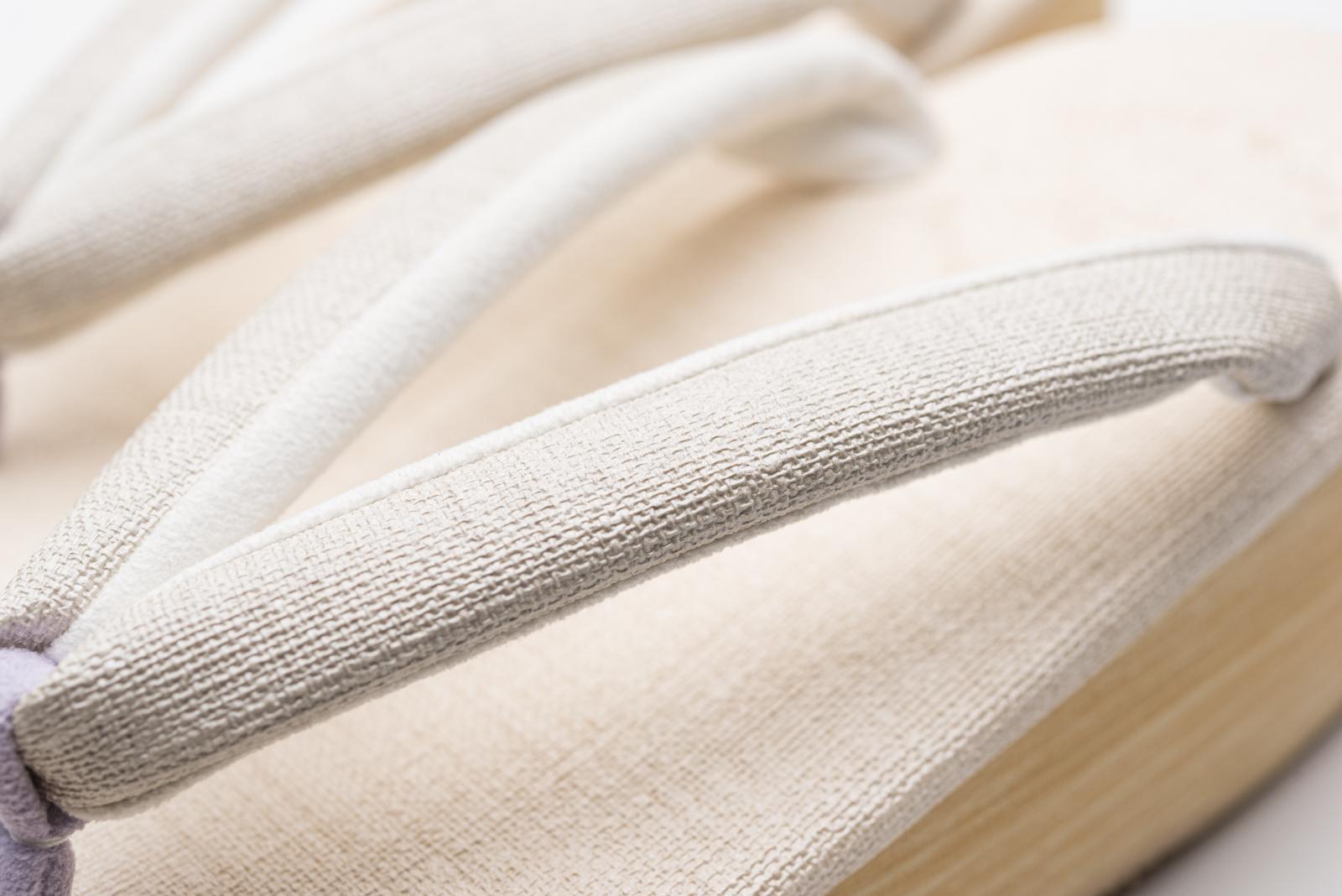 生成りの台に白鼠色の鼻緒を合わせたカフェ草履です。