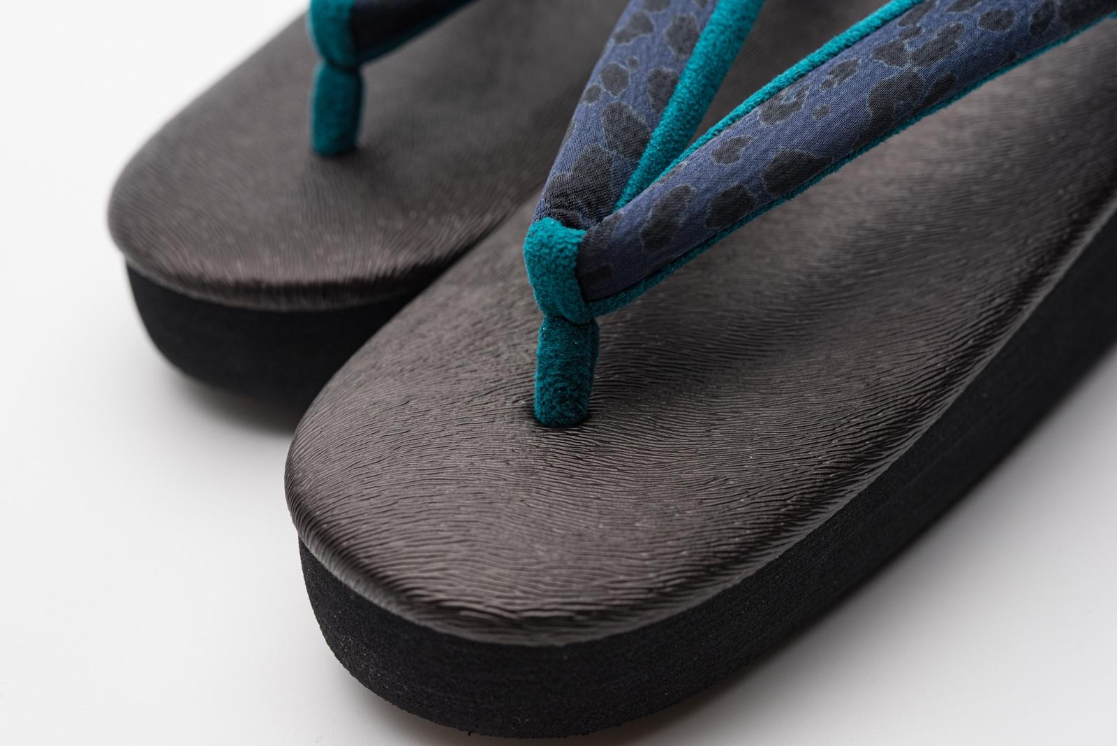 前坪と鼻緒裏に合わせたピーコックブルーがぱっと映えてとても印象的です。