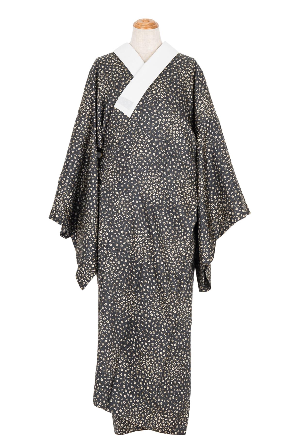 黒地に小桜模様を染めた単衣仕立ての長襦袢です。