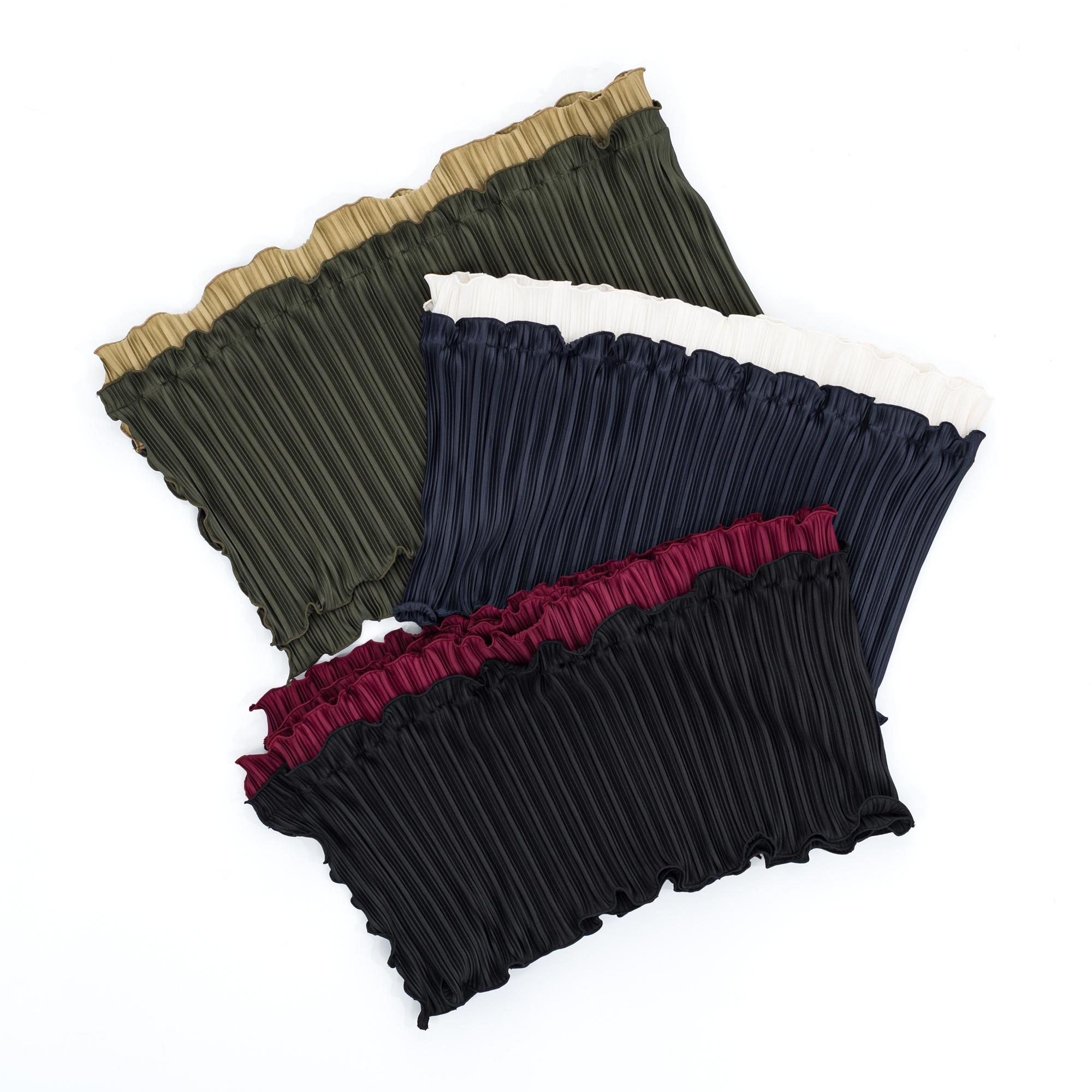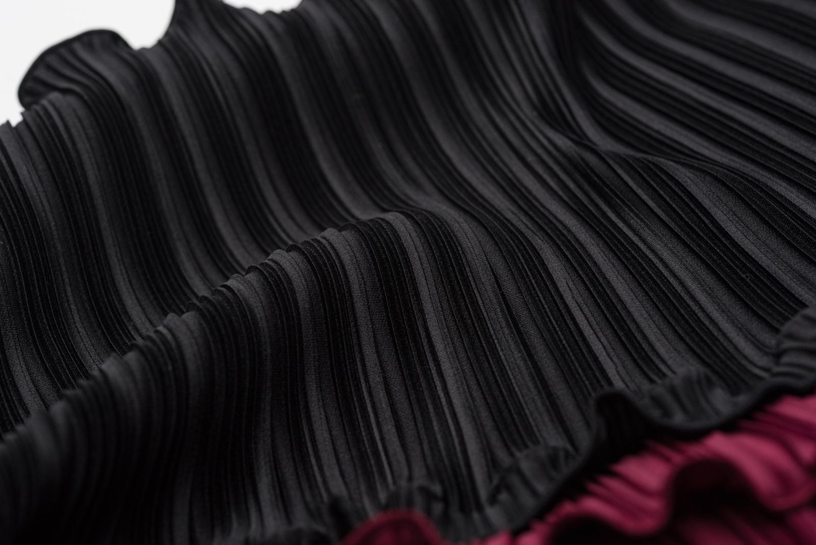 新品 ツインプリーツ バイカラーフリル帯揚げ 黒×ワイン