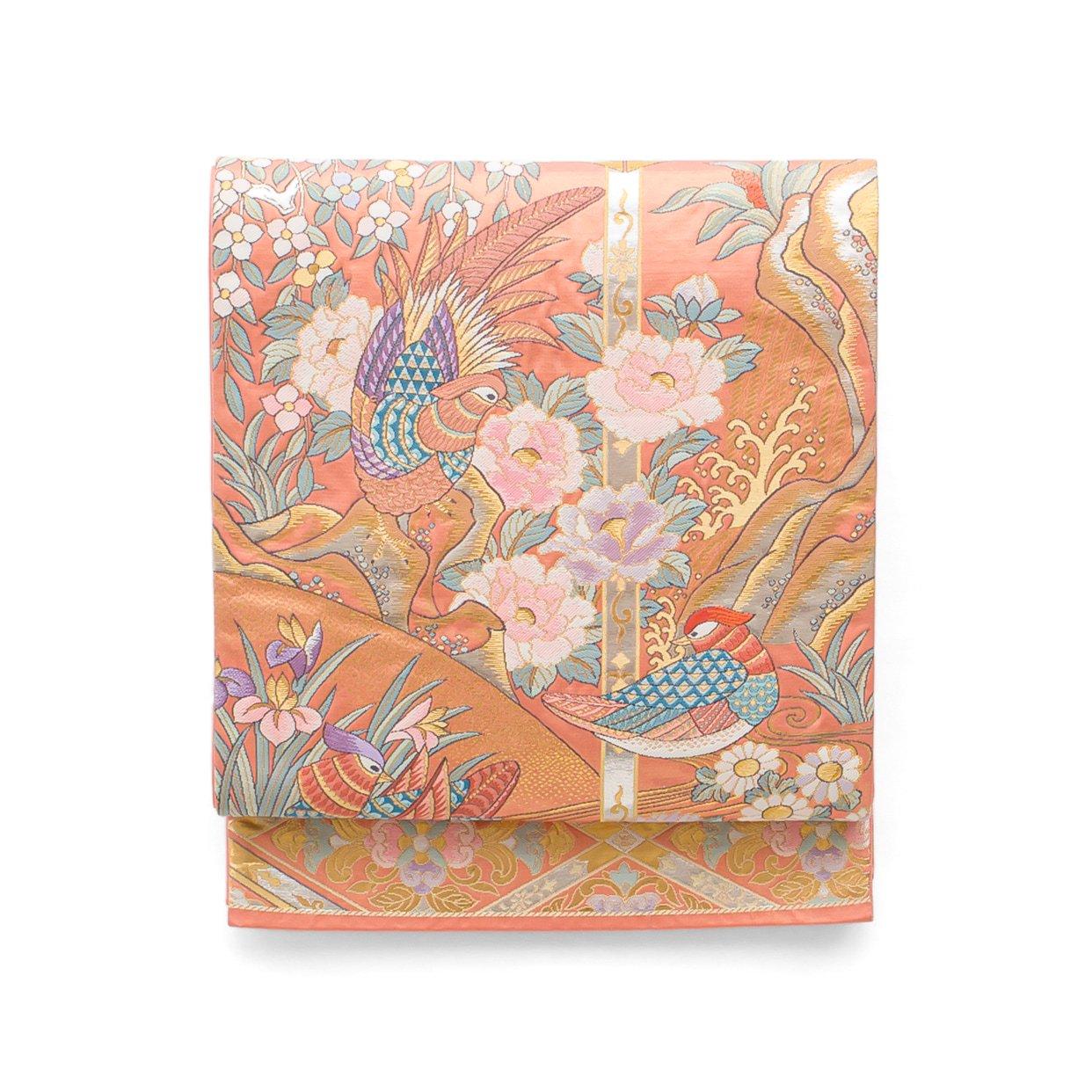 牡丹と雉、杜若と水鳥などを織り出した袋帯です。
