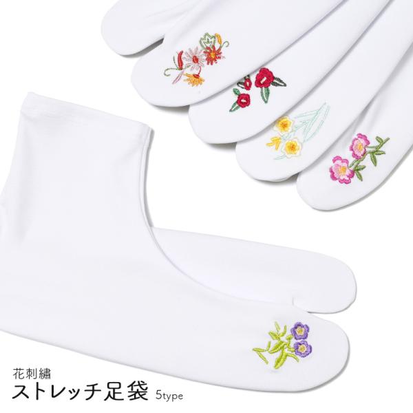 足袋 刺繍 花 白 カジュアル フリーサイズ ストレッチ 口ゴム 和装 着物 浴衣 ソックス レディース 足袋カバー