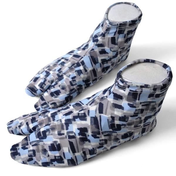 柄足袋 幾何学 モザイク調 水色 グレー フリーサイズ ストレッチ 口ゴム 薄手 モダン 和装 着物 浴衣 足袋 ソックス レディース 足袋カバー