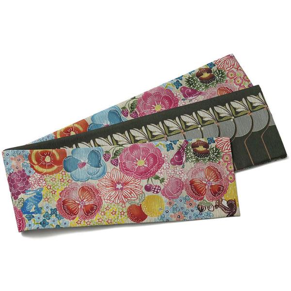 半幅帯 花唐草 アラベスク ジャガード織 長尺 リバーシブル 変り結び
