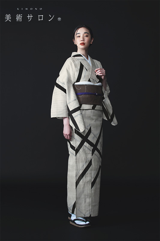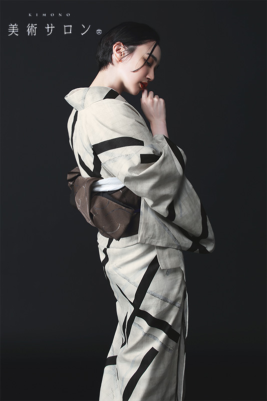 素材・技法の原点から和の形にこだわり新たな和の形を表現するブランド「美術サロン」による浴衣です。