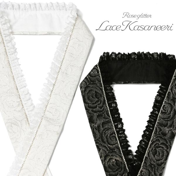 重ね衿 伊達衿 レース ラインストーン 薔薇 ラメ糸 重ね衿ピン付き フェミニン エレガント 成人式 卒業式 振袖 レース着物 袴