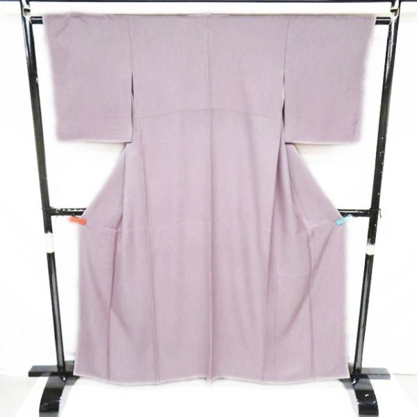 色無地 着物 未使用 正絹 袷 フォーマル 紋付き 地模様 淡紅藤色 身丈159cm 裄63cm M きもの北條 A1076-6