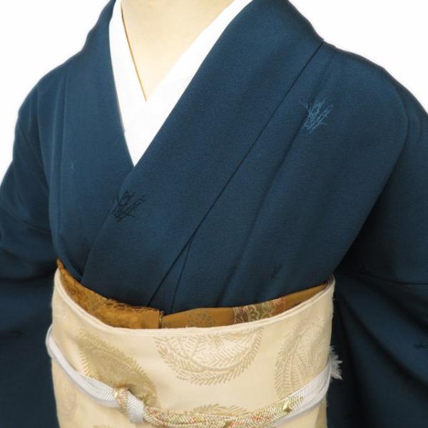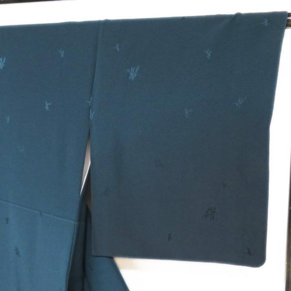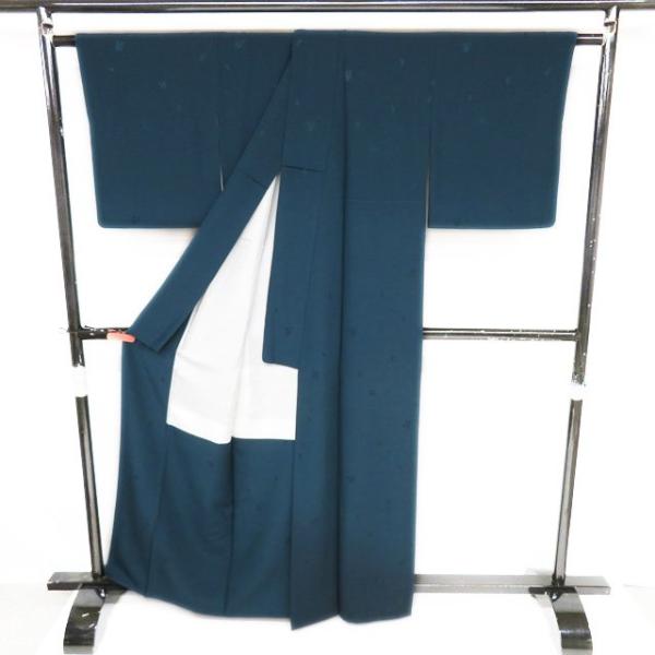 色無地 付下げ 付け下げ 訪問着 着物 中古 正絹 袷 地模様 暈し 深緑色 身丈164cm 裄66cm L きもの北條 A1117-8