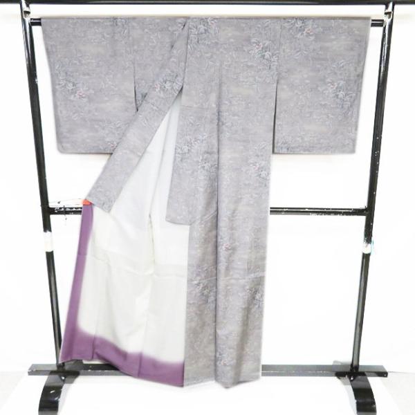 特選 付下げ 付け下げ 訪問着 着物 中古 正絹 袷 フォーマル 田辺哲彦 落款 花の図 灰梅色 多色 身丈157cm 裄67cm M きもの北條 A1329-6