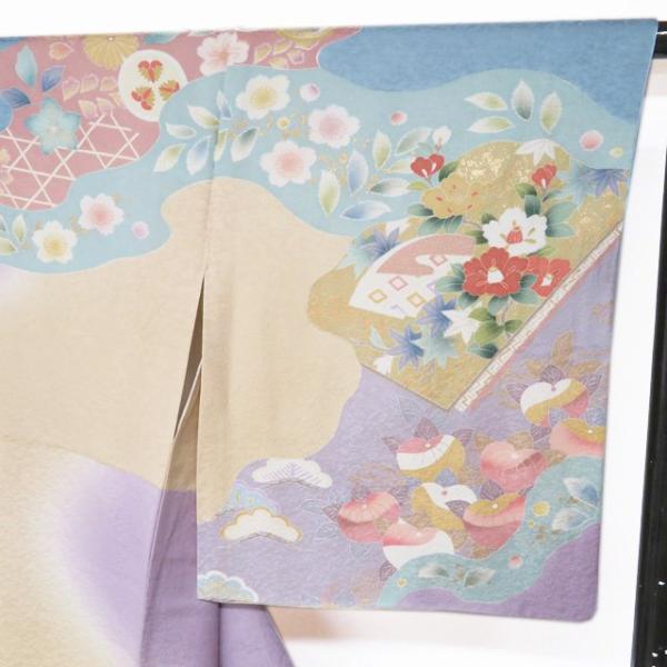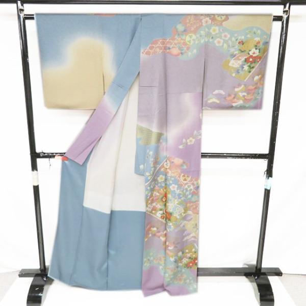 訪問着 着物 中古 リサイクル 正絹 袷 フォーマル 金駒刺繍 花の図 流水 多色 金 身丈167cm 裄66cm L トール きもの北條 A1144-3