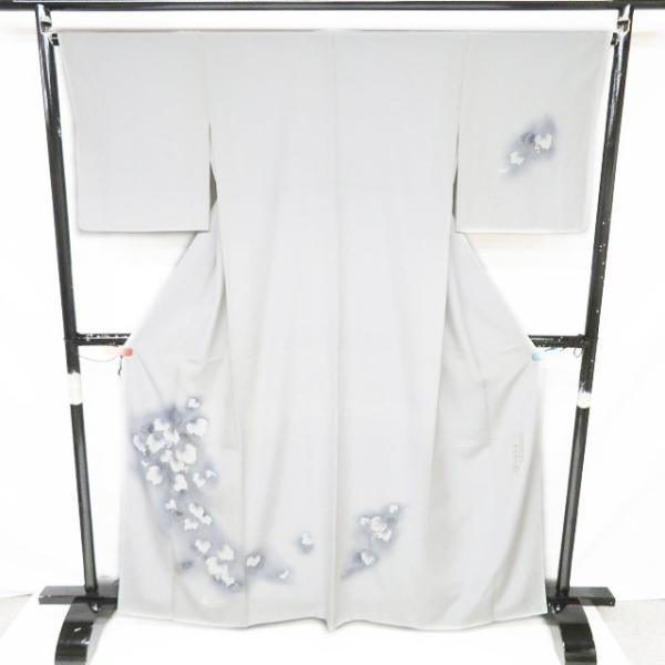 色無地 着物 未使用 正絹 袷 紋付き セミフォーマル 地模様 模様 植物文様 藍鼠色 身丈155.5cm 裄66.5cm SA きもの北條 A1327-9