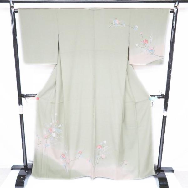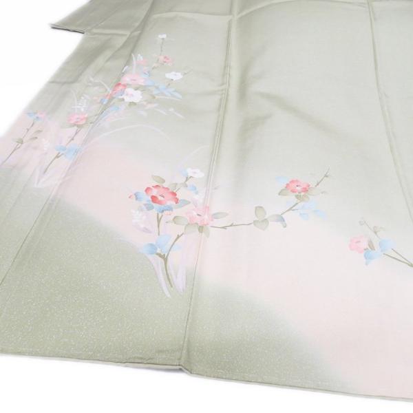 訪問着 着物 中古 正絹 袷 フォーマル 花の図 暈し 苗色 多色 身丈166cm 裄64.5cm L トール きもの北條 A1233-9