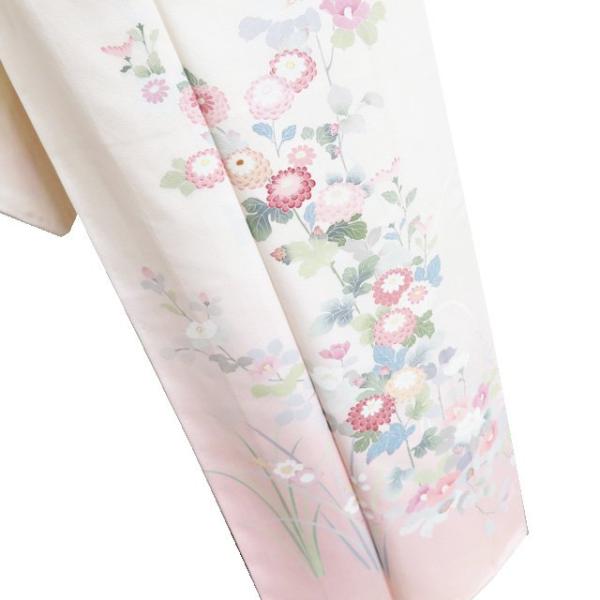 訪問着 着物 中古 正絹 袷 フォーマル 作家物 落款 花の図 菊 暈し 薄卵色 多色 身丈157.5cm 裄64.5cm M きもの北條 A1290-6