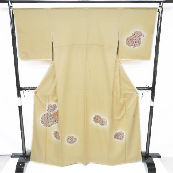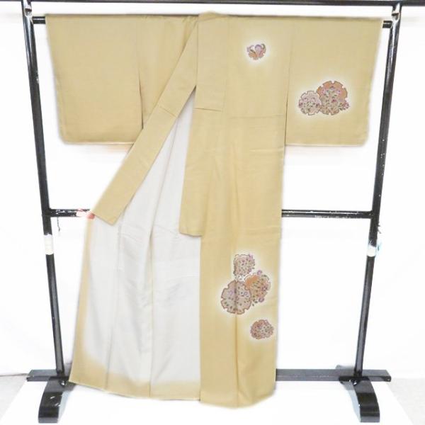 付下げ 付け下げ 訪問着 着物 未使用 正絹 袷 山岡古都 雪輪に花の図 密陀僧色 身丈165.5cm 裄66.5cm L トール きもの北條 A1314-9