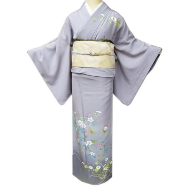 特選 訪問着 着物 中古 正絹 袷 フォーマル 作家物 落款 花の図 薄緑色 多色 身丈165.5cm 裄68cm L トール きもの北條 A1261-4