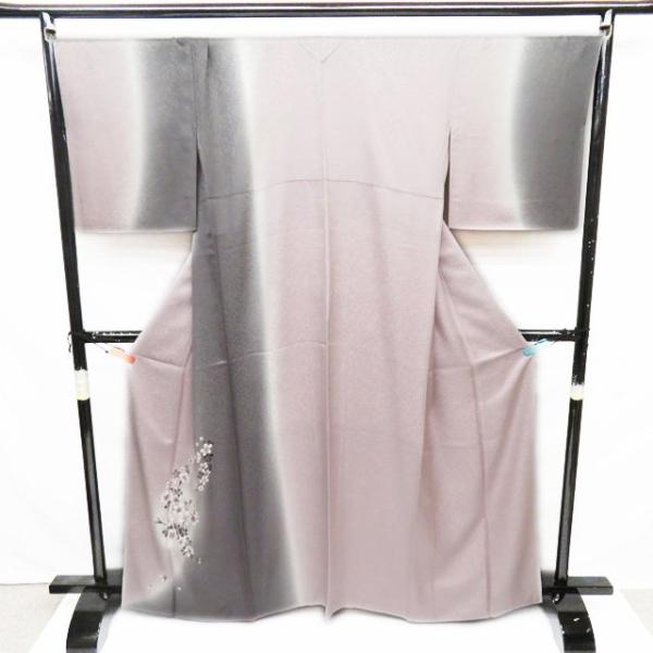 \ FINAL PRICE / 特選 訪問着 着物 中古 正絹 フォーマル 花の図 桜 桜色 灰色 身丈164cm 裄70cm L きもの北條 A919-8