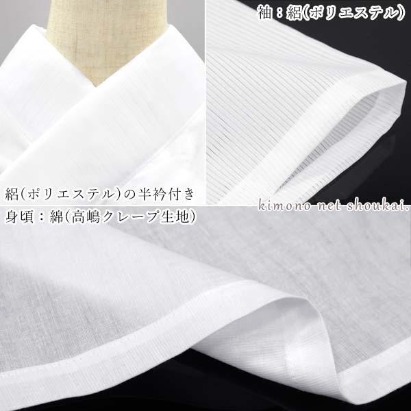 外から見える衿と袖は絽の長襦袢、身頃は汗を吸いやすくベタツキにくい綿100%になっております。
