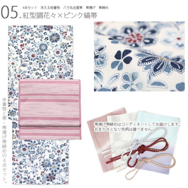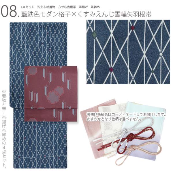 洗える着物 4点セット 袷着物 名古屋帯 帯揚げ 帯締め コーディネートセット レディース 小紋 仕立て上がり 福袋 着付け練習