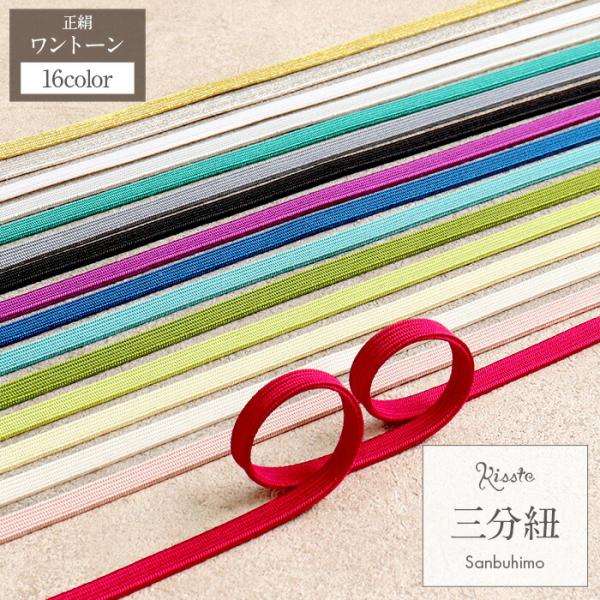 帯締め 三分紐 赤 桃 生成り 紫 青 水色 青緑 草色 黄緑 灰 黒 白 金 銀 全16色 春 夏 秋 冬 絹100% 中国製 メール便対応可