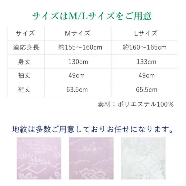 Lサイズ 身丈:133cm 袖丈:49cm 裄65.5cm(適応身長 約160cm〜165cm) ※地紋の出方は商品ごとに異なります。