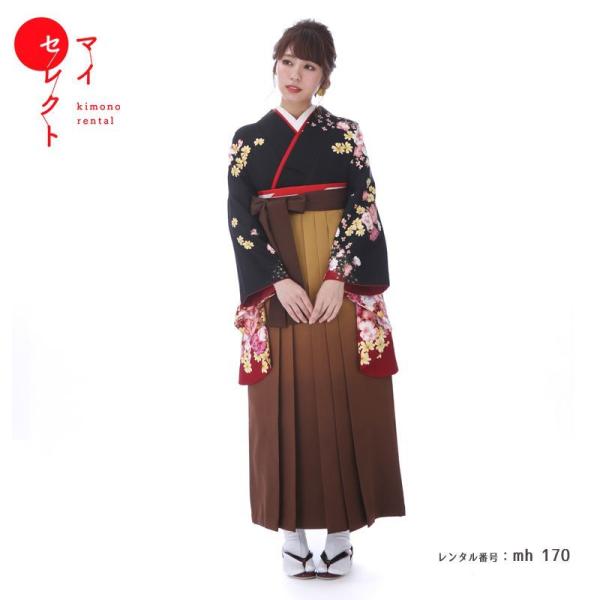 卒業式 袴 教員 レンタル 大学生 教員 先生 卒業式 女子 セット モダン レトロ mh_170 黒 カラシ 茶