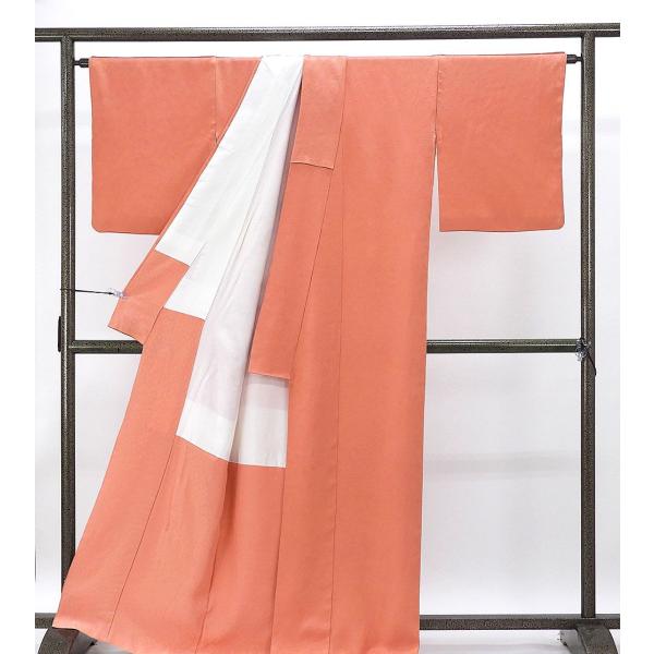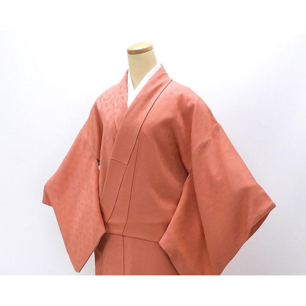 色無地 正絹 コーラルピンク 身丈165.5cm 裄丈66.5cm 剣片喰 良品 中古 リサイクル 着物 a4160