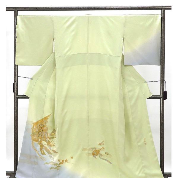 訪問着 正絹 螺鈿作家 藤本隆士 御所車 身丈162cm 裄丈69.5cm 良品 中古 リサイクル 着物 b4298
