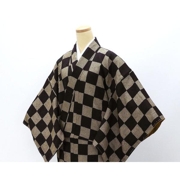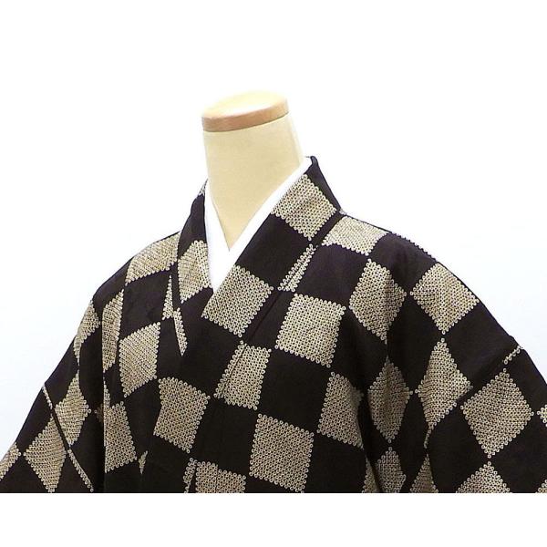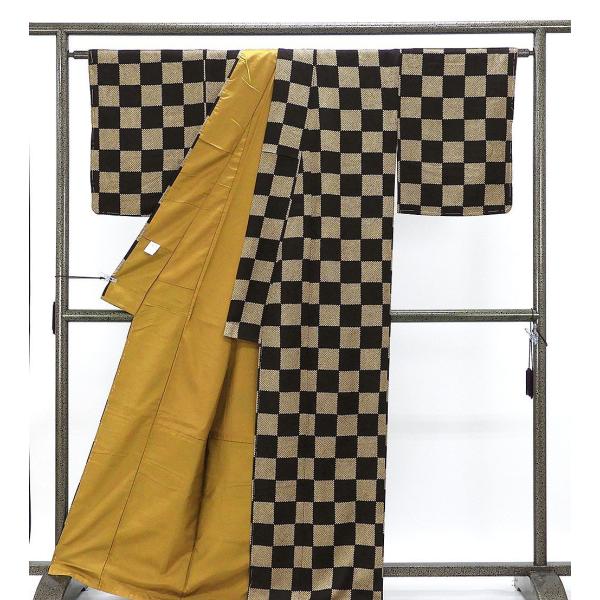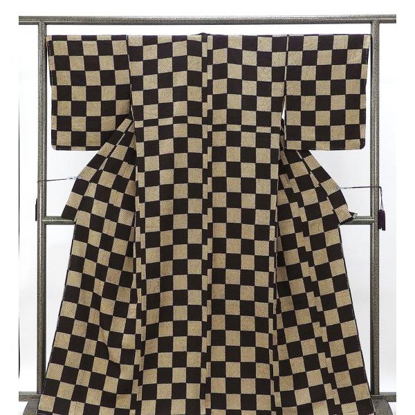 小紋 未使用 正絹 市松 匹田 嵐山よしむら 身丈164.5cm 裄丈67cm 未着用 美品 新古品 未使用品 着物 c4133