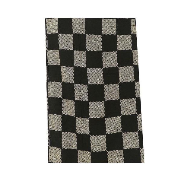 草葉縫取り地紋の黒地に薄茶色で匹田市松模様が柄付けされています。