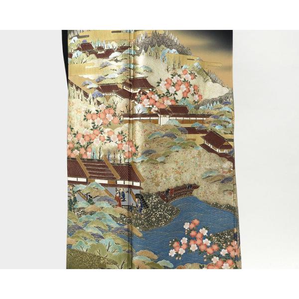 留袖 仕立済 正絹 時代風景模様 紋入れ代込み 黒留袖 身丈164.5cm 裄丈68cm 着物 フォーマル 結婚式 披露宴 f1102