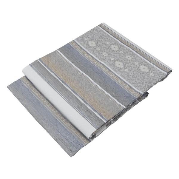 オフホワイトや狐色・紺色・茶鼠色などの多色で横段花菱模様が柄付けされています。