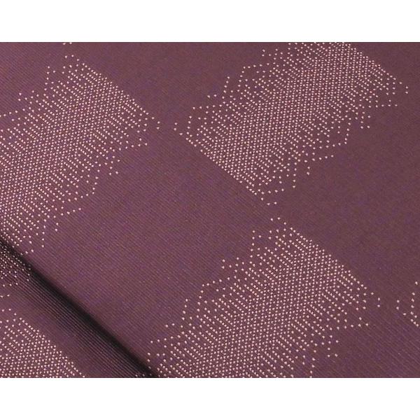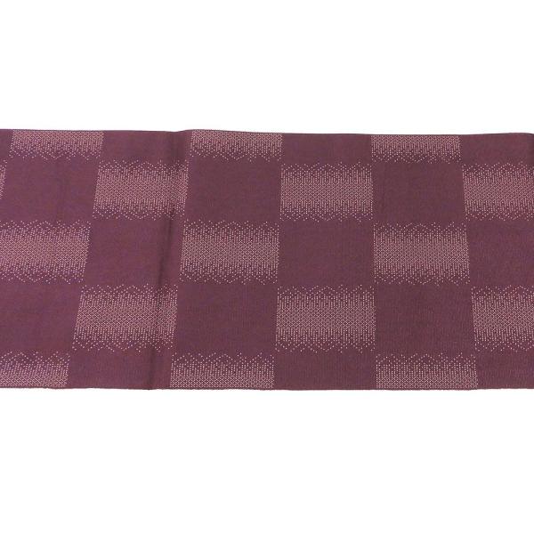 葡萄色地に鴇浅葱色で格子幾何模様が柄付けされています。