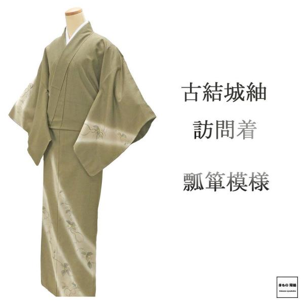 訪問着 未使用 正絹 瓢箪 身丈164.5cm 裄丈67cm 古結城紬 未着用 美品 新古品 未使用品 着物 b4278