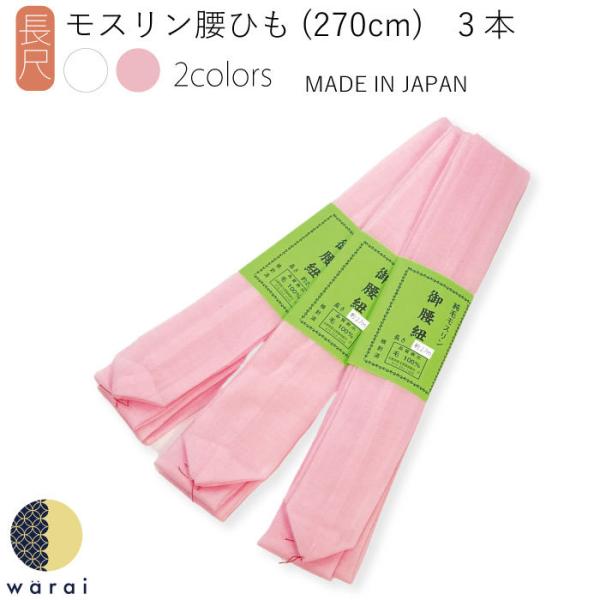 腰紐 腰ひも 長尺 3本セット モスリン こしひも 270cm 着物 着付け 長襦袢 成人式 結婚式 浴衣 和装締め 襦袢 和装 着付け小物 振袖 女性